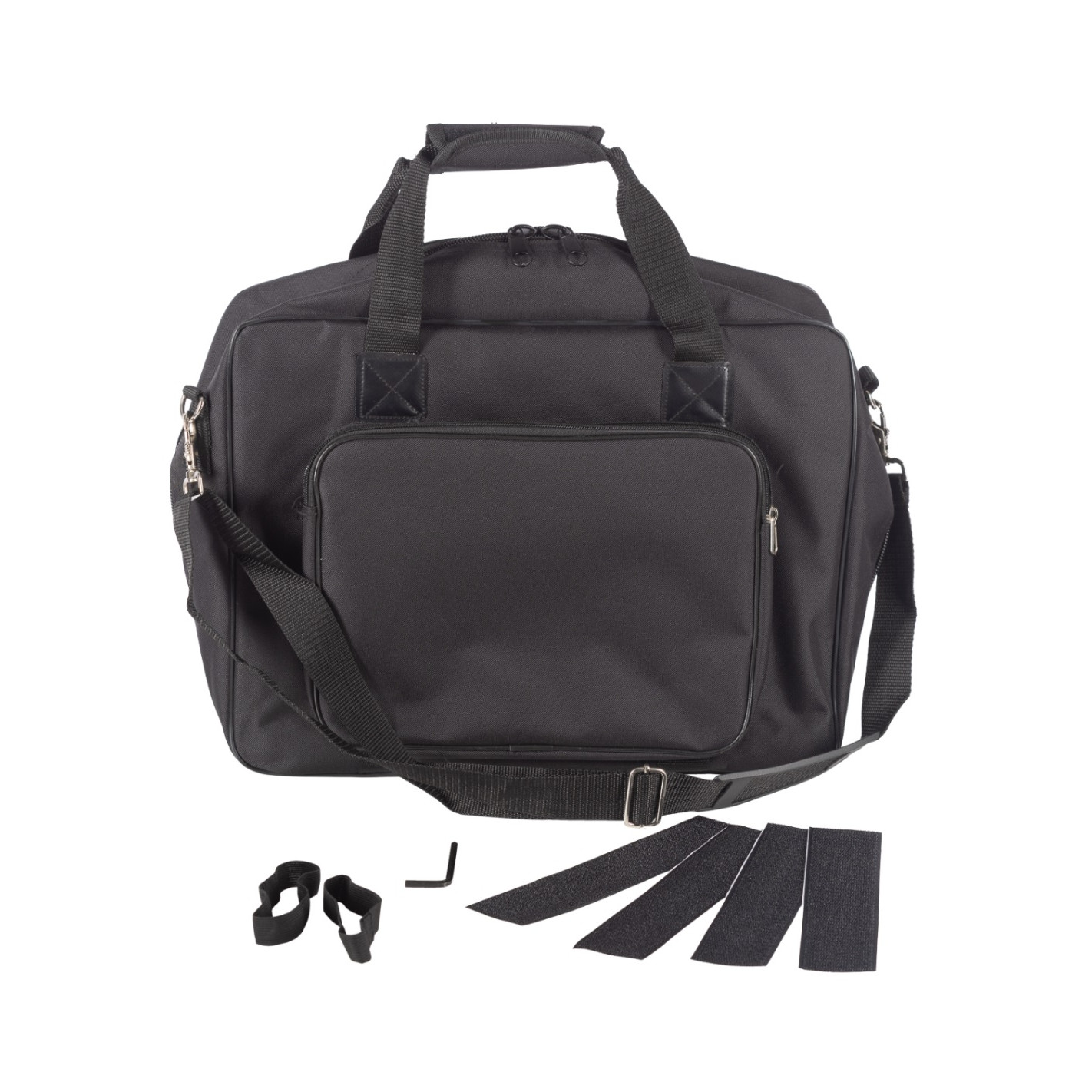 GS052S Estructura robusta de aluminio. Tres barras transversales recubiertas de velcro. Funda acolchada con bolsillo y correa para el hombro. 4 Cintas de velcro de 52 x 250 mm. 2 Bandas de goma fuertes para fijar la fuente de alimentación. Medidas: 406 x 203 x 80mm.