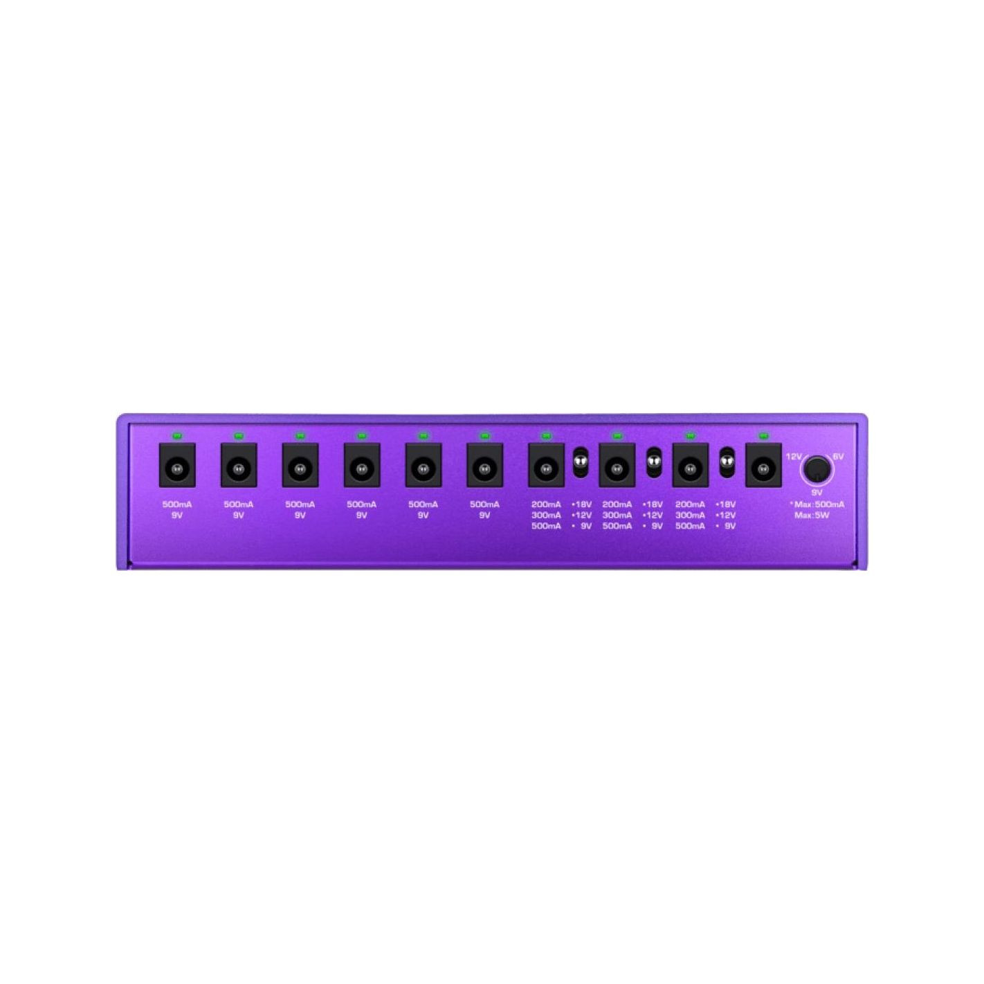 - Seis salidas de 9V a 500 mA
