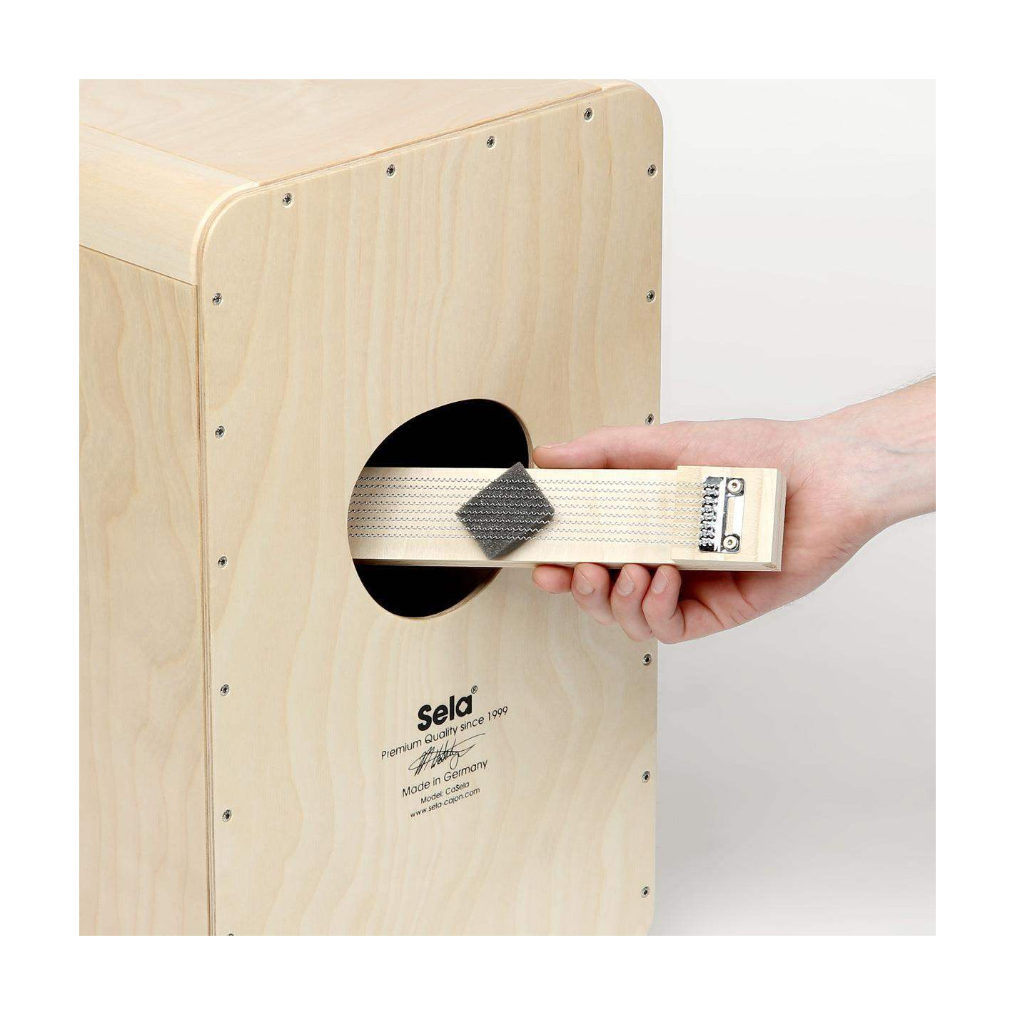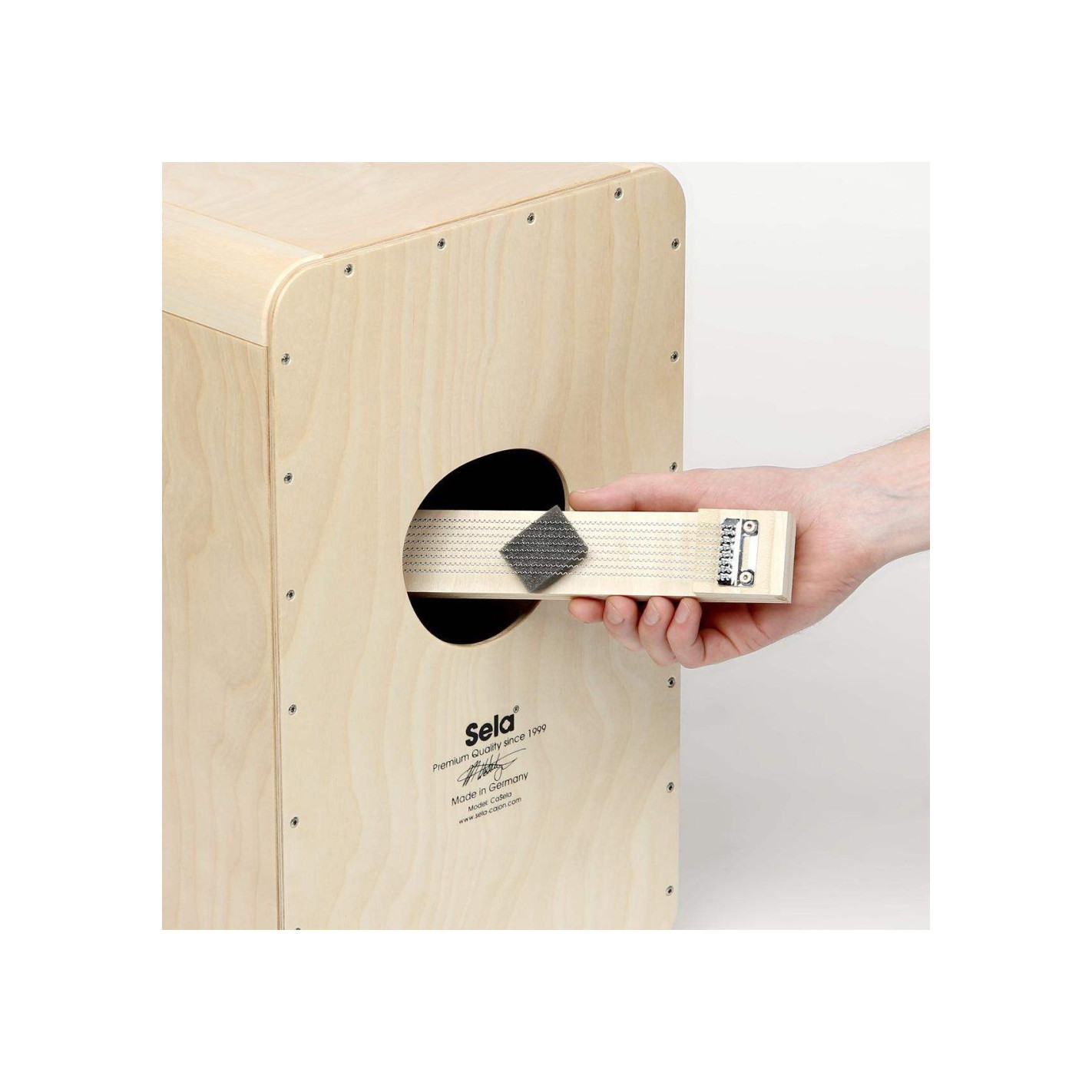Gracias al Sela Snare System es posible insertar un segundo Sela Snare Head en su cajón Sela Wave, obtiendo así un sonido "crujiente" idela para el flamenco y los grooves latinos.