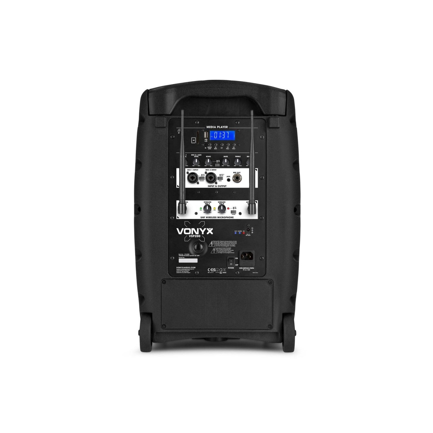 Con el VSP200 obtienes un sistema de sonido portátil de alto nivel que lleva tu experiencia de audio a alturas sin precedentes. Además de una unidad amplificadora de biamplificación incorporada, el VSP200 también cuenta con un práctico receptor BT, que permite la transmisión continua de música desde cualquier teléfono inteligente o tableta. Además, este sistema tiene un puerto USB fácil de usar y una ranura SD, para que los MP3 se puedan reproducir sin esfuerzo. La batería recargable hace que este sistema sea perfecto para numerosas aplicaciones, como el uso de megafonía y actuaciones en la calle. Los dos micrófonos UHF incluidos te dan total libertad en el escenario.