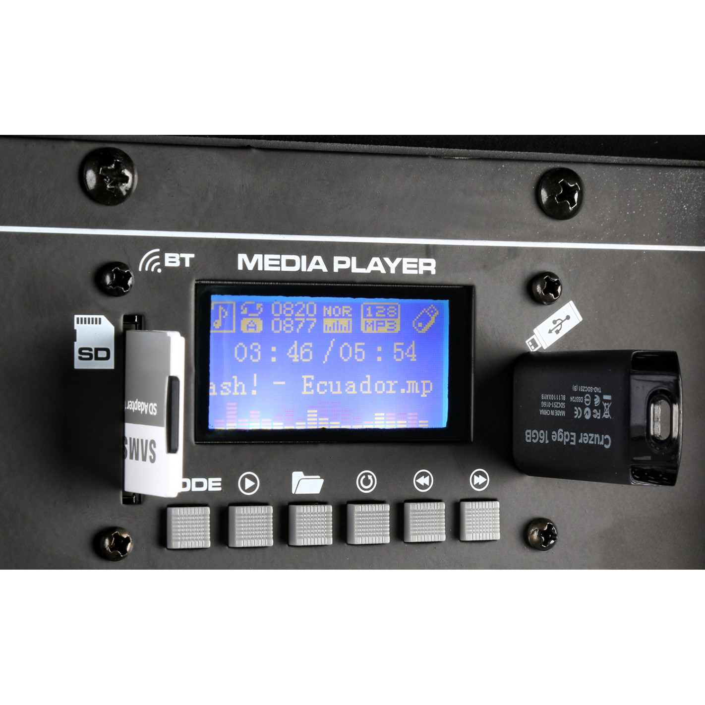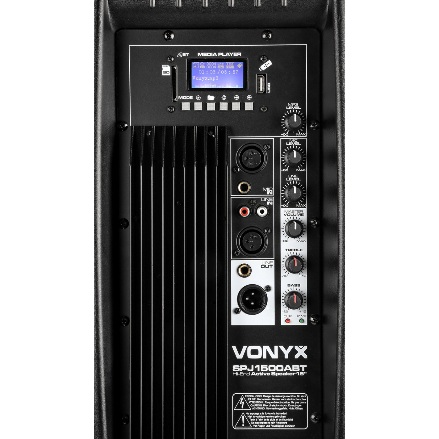 Bafle de 15" PA en carcasa rígida de ABS incorporando tecnologia BT, reproductor de MP3, amplificador / mezclador de 800W, woofer de alta potencia y motor de agudos de alta dispersión. La tecnologia BT permite una fácil ubicación del equipo. El reproductor de MP3 permite escuchar los ficheros de un stick de USB o de una tarjeta SD. La salida de línea permite enlazar varios bafles activos. El recinto ligero de ABS se termina con rejilla metálica protectora para el woofer. Ideal para aplicaciones en bares, restaurantes, pequeños teatros y salas, fitness y salas de conferencia asi como en escenario.