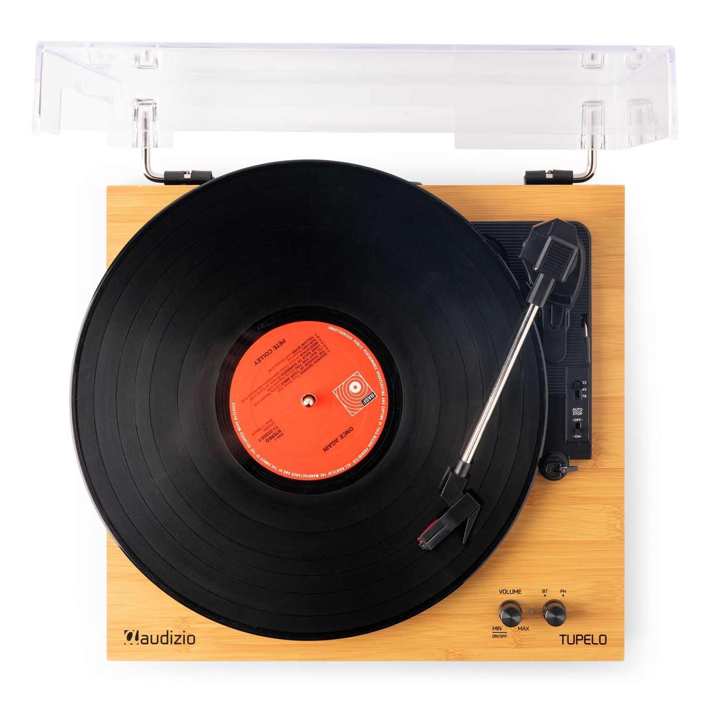 El tocadiscos Audizio Tupelo combina la reproducción clásica de vinilo con la comodidad moderna en un diseño elegante. Disfruta de tus discos favoritos o transmite música de forma inalámbrica mediante el streaming de BT. Los altavoces estéreo duales de rango completo incluidos ofrecen un sonido potente, lo que facilita disfrutar de la música nada más sacarlo de la caja.