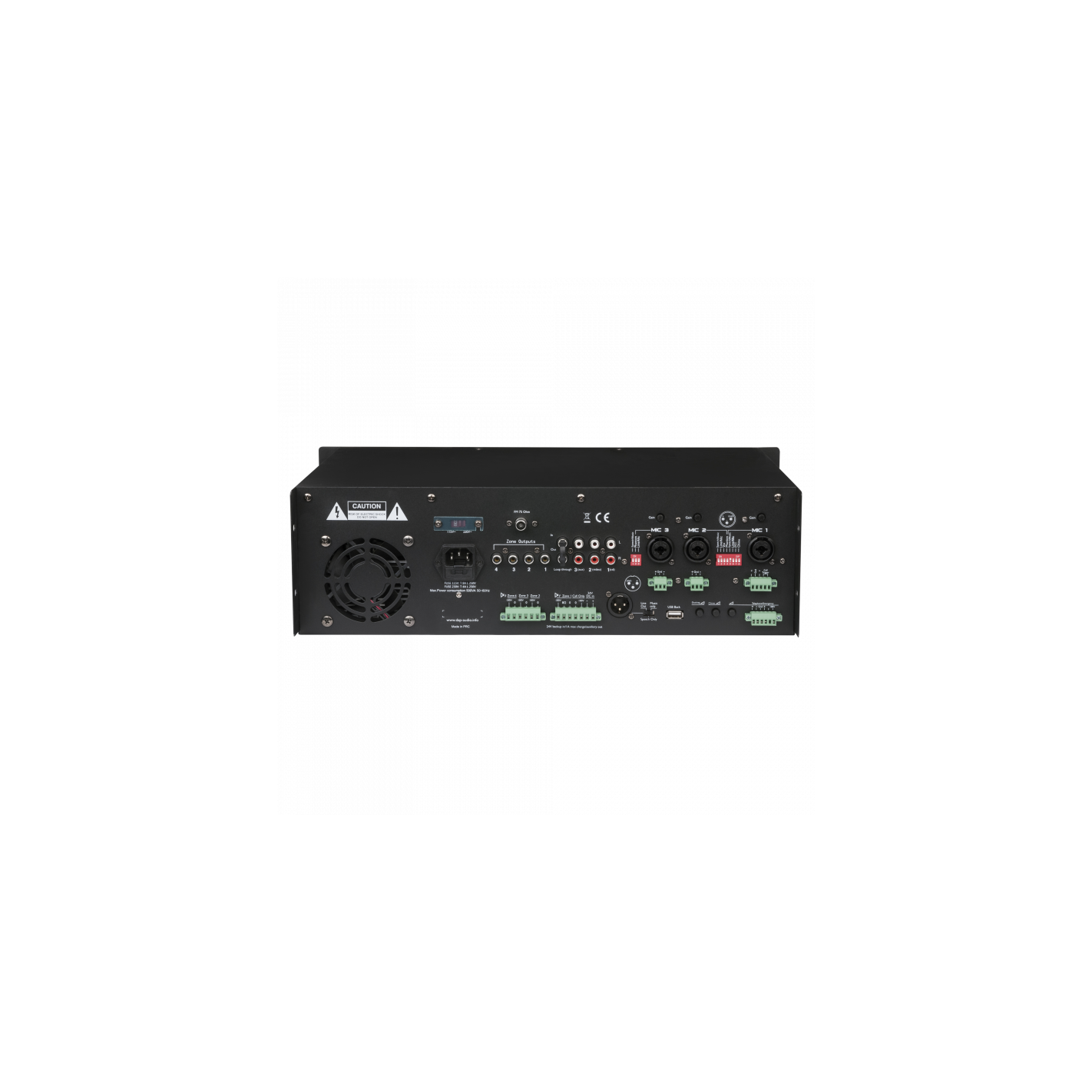 La unidad DAP ZA-9120TU es una consola de mezclas con una etapa de potencia de 100 V y 120 W, con 7 fuentes de entrada seleccionables, 3 entradas de micrófono y 2 zonas Todas las entradas de micrófono están equipadas con alimentación Phantom y se pueden seleccionar también como entradas de línea. Puede utilizar el filtro de voz integrado para mejorar la audibilidad. Dispone de 3 entradas de línea de dedicación exclusiva en la parte posterior y una entrada delantera especial para línea/teléfono de acceso fácil para conectar reproductores MP3 o dispositivos móviles. Cuenta con un reproductor de audio USB y un sintonizador integrados y con una pantalla LCD de gran tama?o que muestra la fuente de señal activa, información sobre el sintonizador y etiquetas ID3. El sintonizador de FM incorporado puede almacenar hasta 10 emisoras predefinidas. La etapa de potencia tiene también funciones avanzadas como prioridad, campana con nivel ajustable, entrada de emergencia, control de reducción del nivel de sonido, conexión directa y una salida que se puede establecer como salida de señal de línea, solo para música o solo para micrófono. Cada zona posee también sus propias salidas de línea para conectar etapas de potencia adicionales y ampliar el sistema de megafonía. La unidad ZA-9120TU es la solución integral ideal fácil de utilizar para sistemas de megafonía de mediano tamaño.