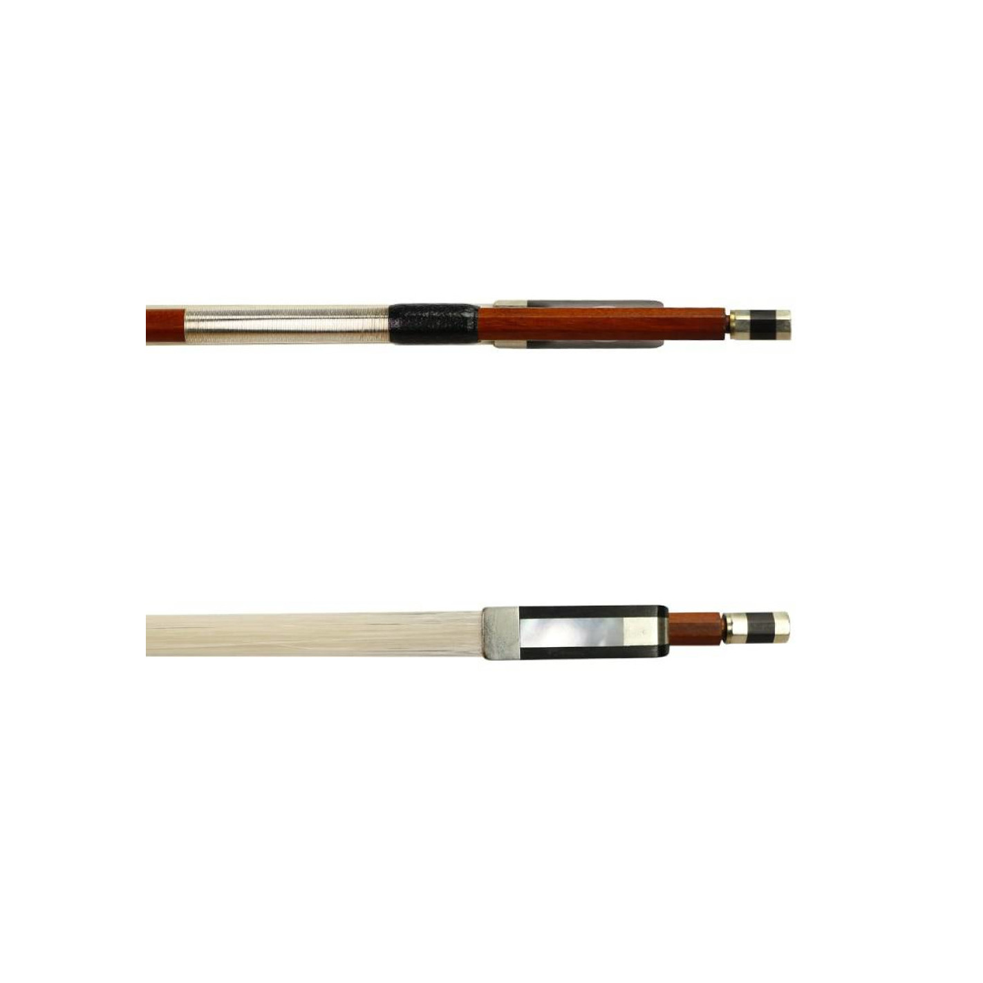 Arco para Viola de tamaño 4/4 de madera de Pernambuco, con nuez de ébano, montado en plata, con ojo de nácar y hembrilla d