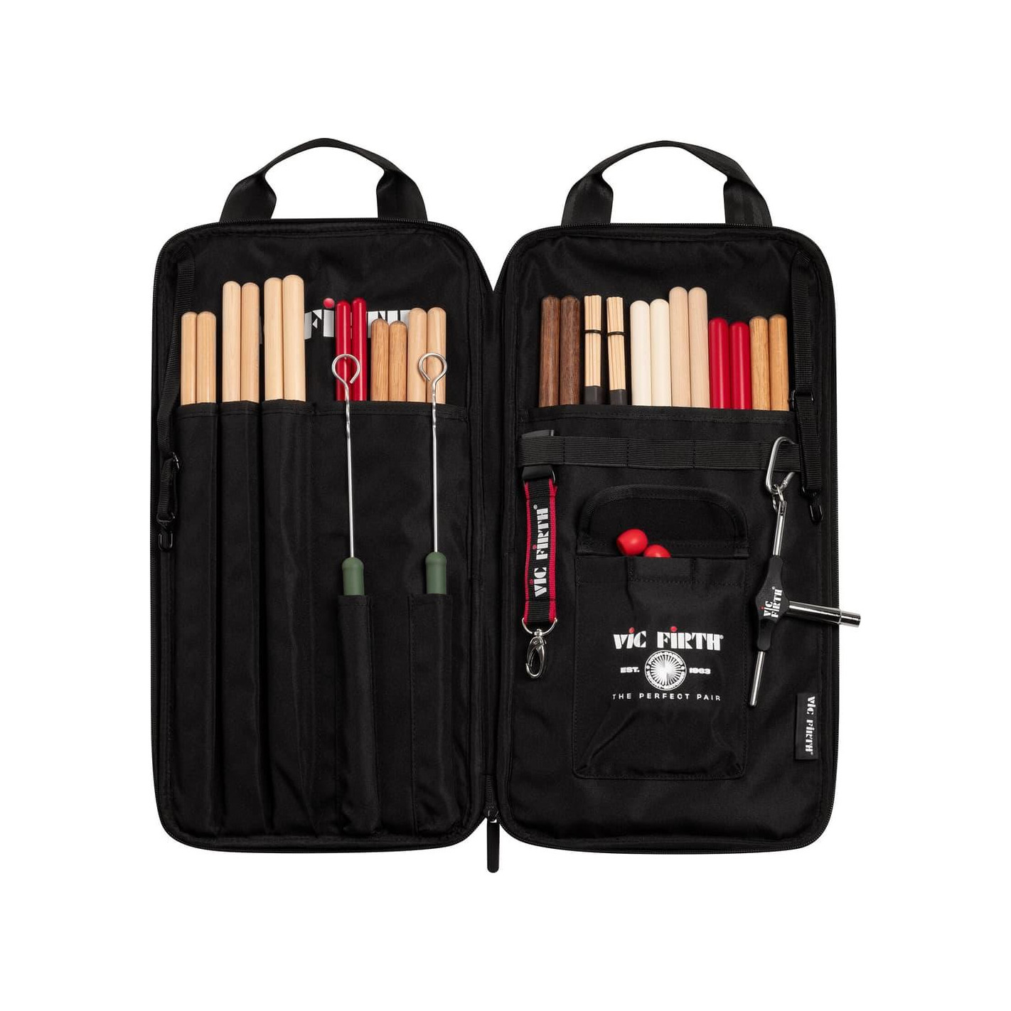 Accesorio indispensable para bateristas desde hace décadas, la funda para baquetas Vic Firth Classic vuelve con más funcionalidades. Los bolsillos frontales y traseros con cremallera, junto con la red elástica en la parte delantera, ofrecen un espacio seguro para todos los objetos esenciales. En el interior, diferentes compartimentos permiten guardar baquetas y escobillas. Fabricada con materiales resistentes e impermeables, todas las costuras y bolsillos están reforzados. La funda cuenta con correas ajustables para sujetarla al timbal base.