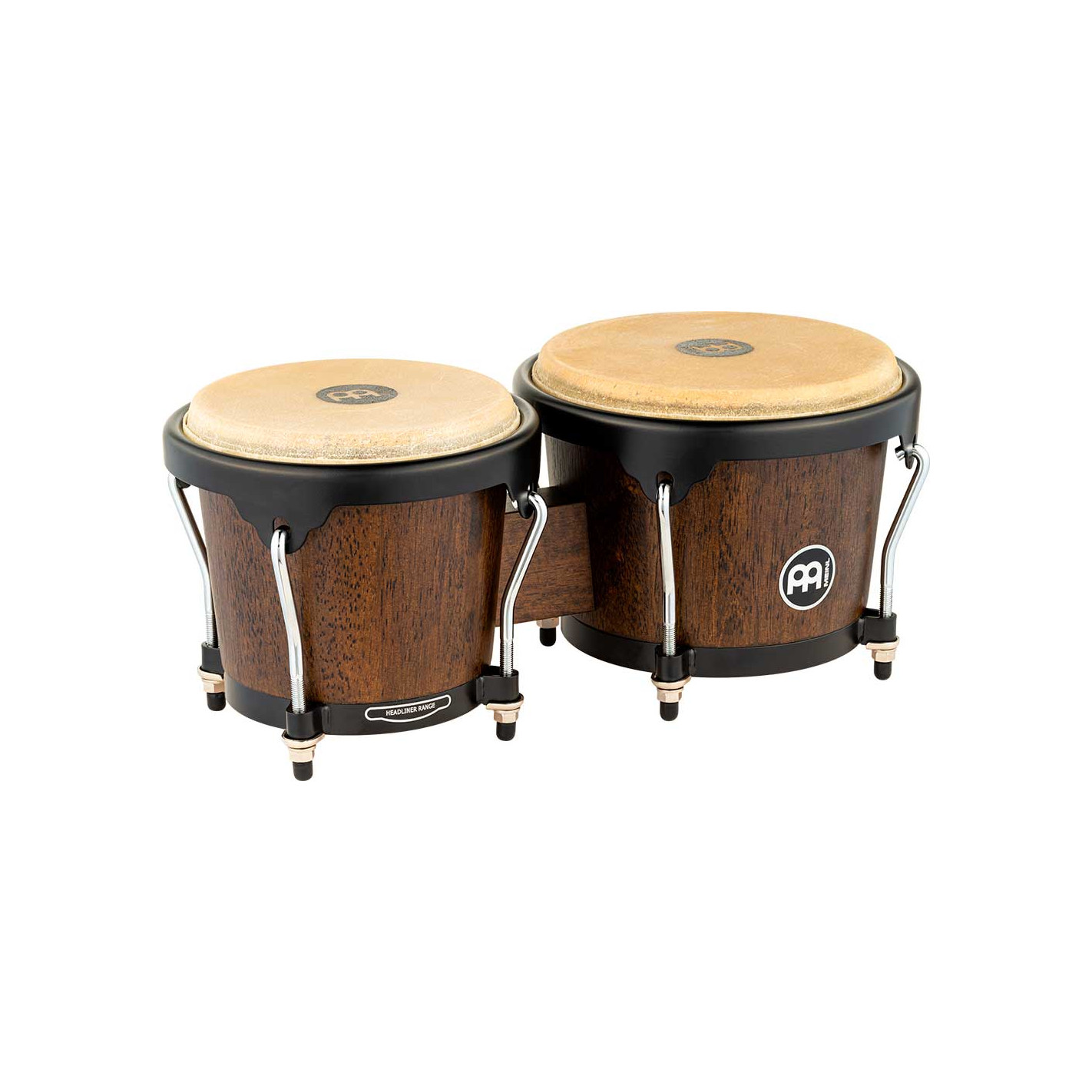 BONGOS 'Set de bongós de madera (6 3/4'' macho / 8'' hembra), color Wine Barrel. Confeccionadas en madera de caucho y parches de piel de búfalo seleccionada a mano.