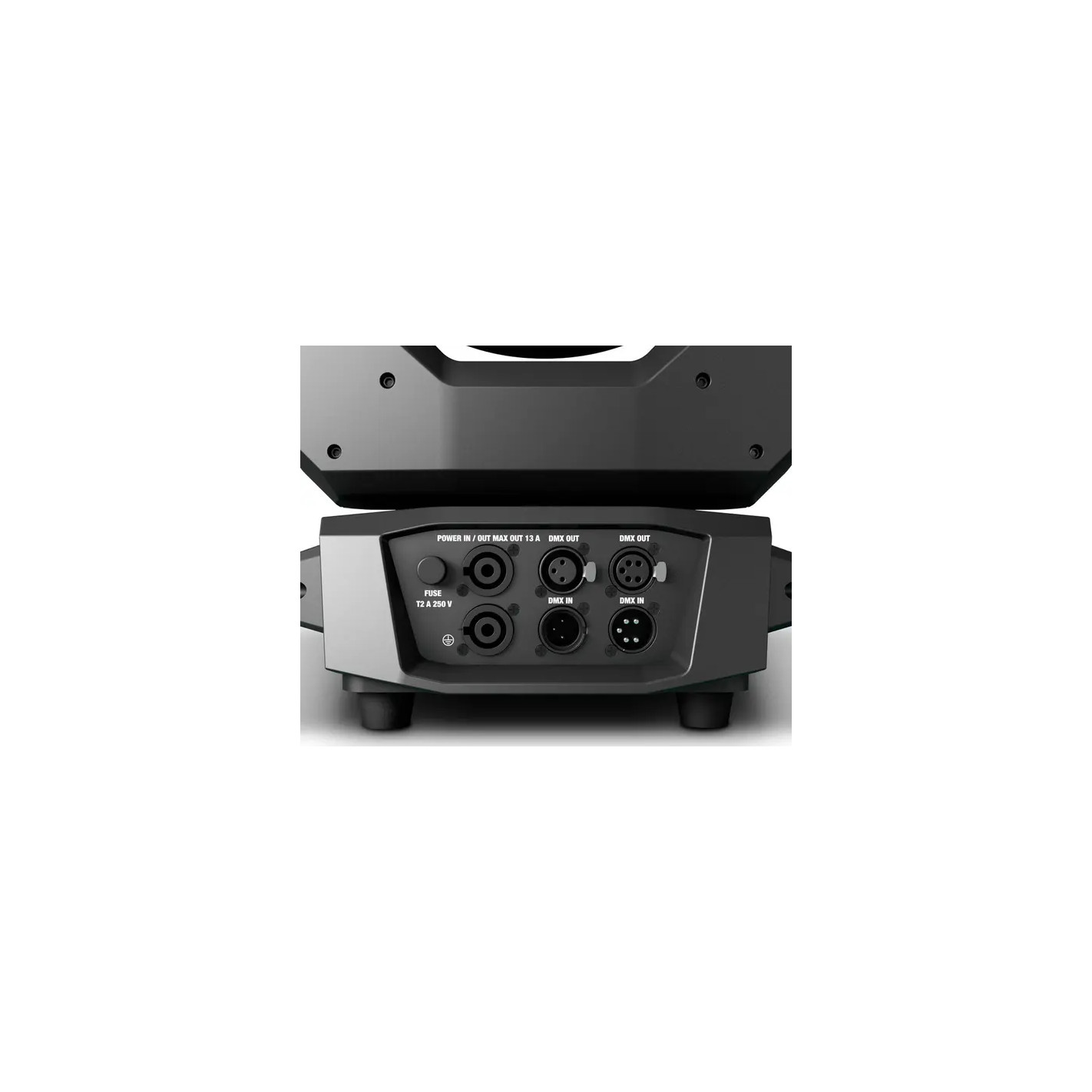Los dos motores de alta velocidad ofrecen un giro continuo y preciso horizontal y vertical para lograr patrones de movimiento de gran energía. Esto permite una intensidad de iluminación de 8500 lux a 3 m en la dirección que desees. La MOVO® BEAM 200 viene en una carcasa de compacta de material compuesto y pesa 8,4 kg.
