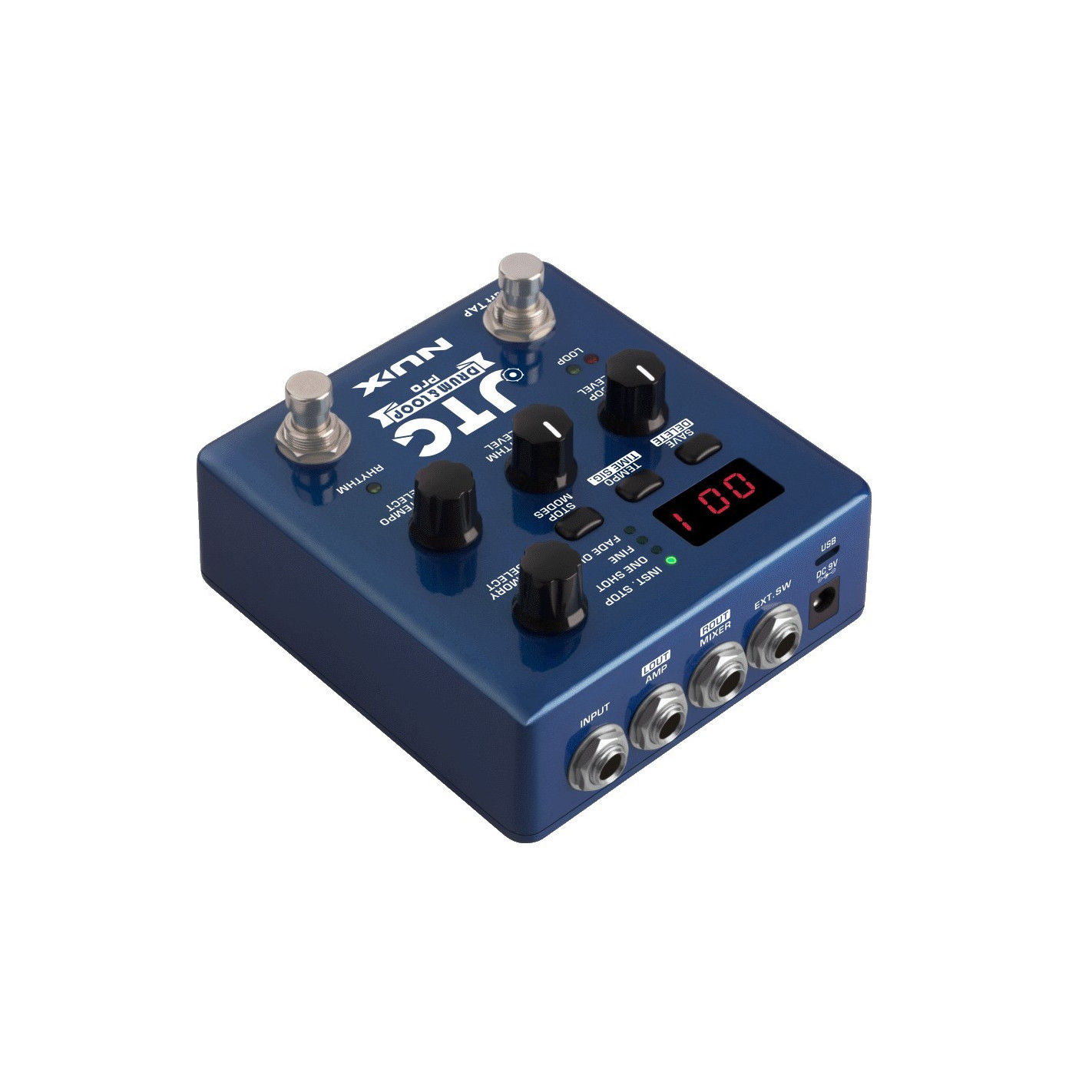 Pedal de efectos NUX JTC Drum & Loop Pro - Looper de pedal avanzado con controles simplificados, 6 horas de registro y 256 memorias. Tiene controles independientes para loopers y ritmos de batería, diferentes modos de grabación y muchas funciones con las que gestionar su rendimiento de forma flexible pero, al mismo tiempo, intuitiva.