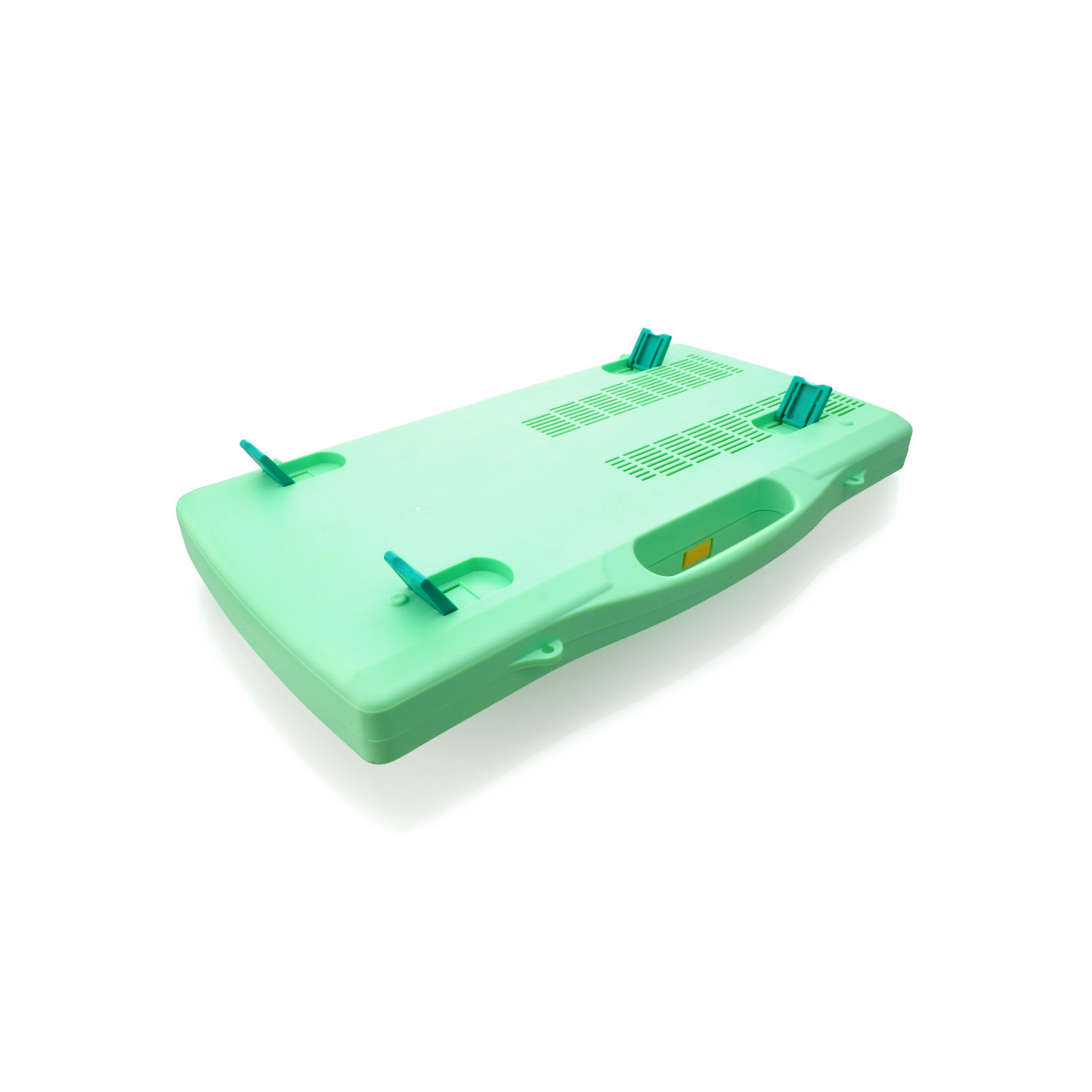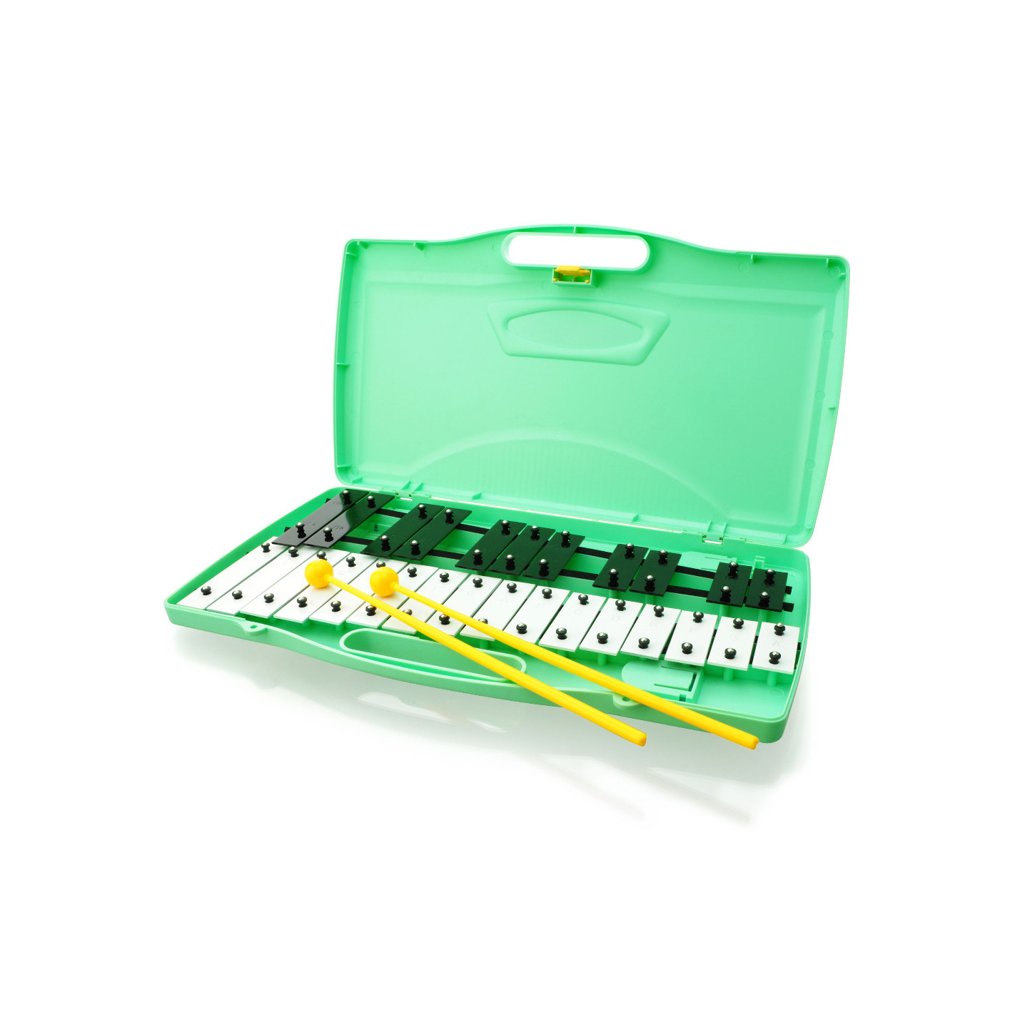 Carrillón cromático de 27 teclas en blanco y negro, con maletín verde agua plástico. Incluye mazas.