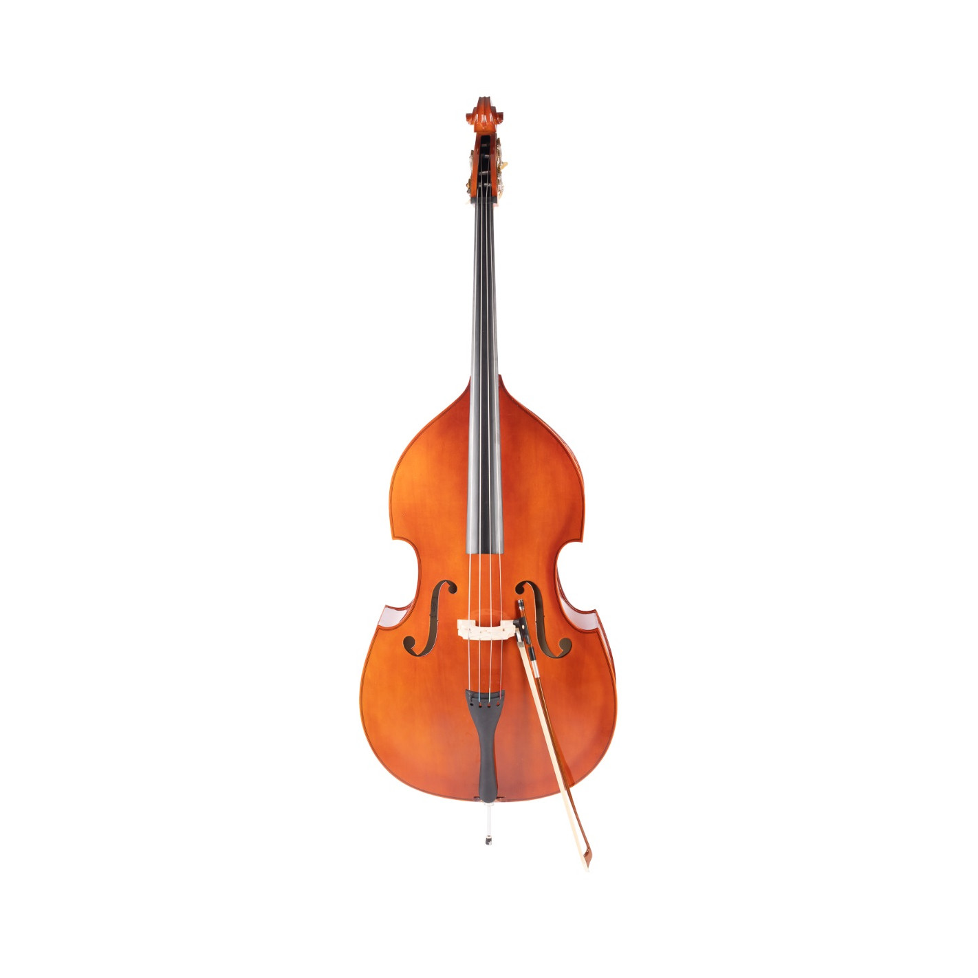 Contrabajo de tamaño 1/2 con arco arco francés, resina y funda de nailon con mochila.