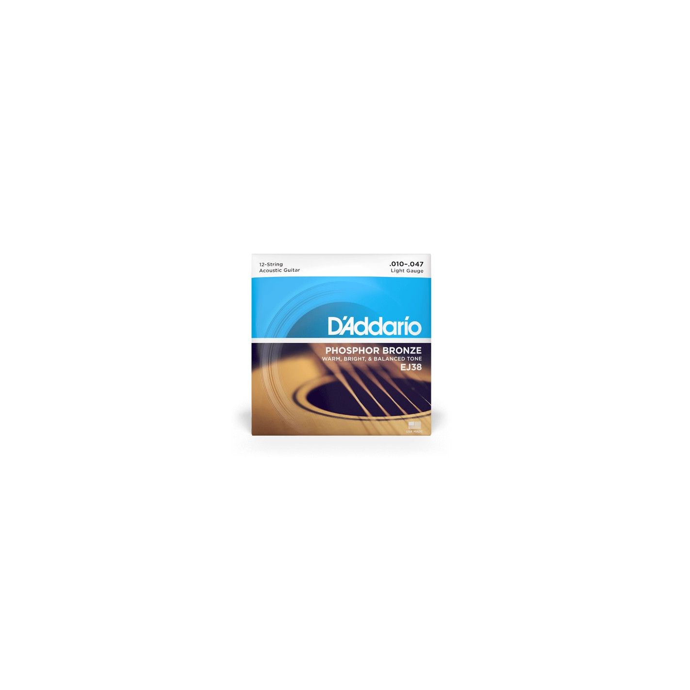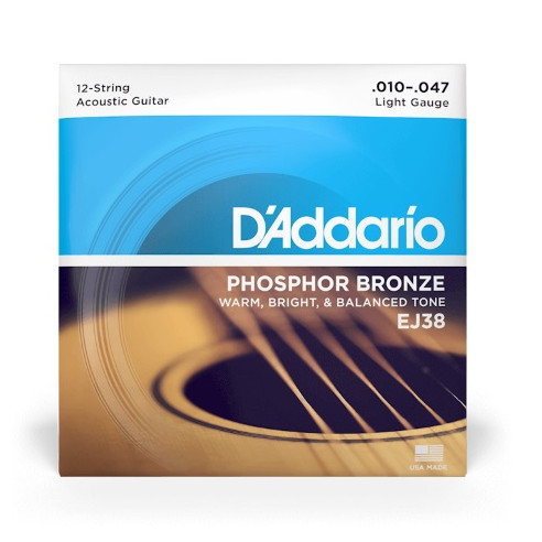 El EJ38, el juego de acústica de 12 cuerdas más popular de DAddario, ofrece un equilibrio ideal de volumen, proyección y tacto cómodo. Diseñadas para todas las marcas y modelos de guitarras acústicas de 12 cuerdas.