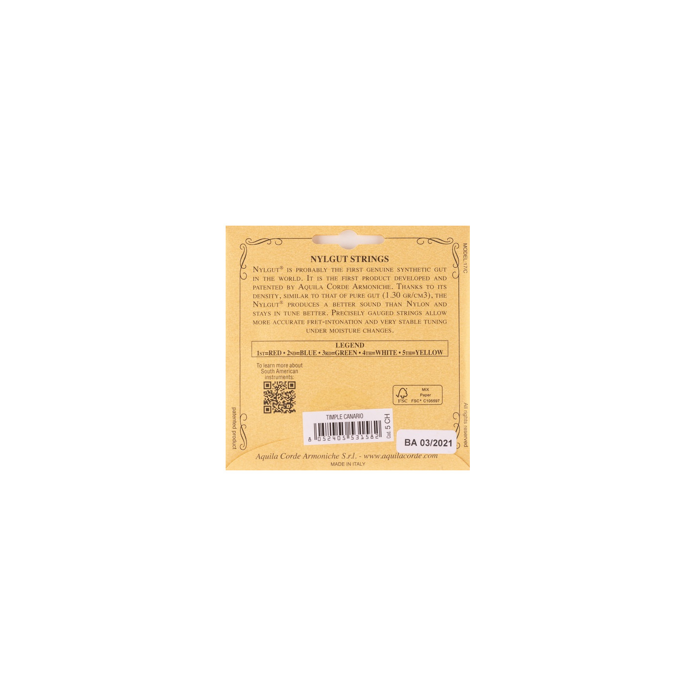 El Nylgut, un material desarrollado por Aquila, es un material sintético que simula las cuerdas de tripa. Gracias a su densidad, similar a la de la tripa pura ( 1.30 gr/cm3 ) el nylgut produce un mejor sonido que el nailon y y ofrece una afinación estable y precisa, incluso en condiciones de humedad adversas.