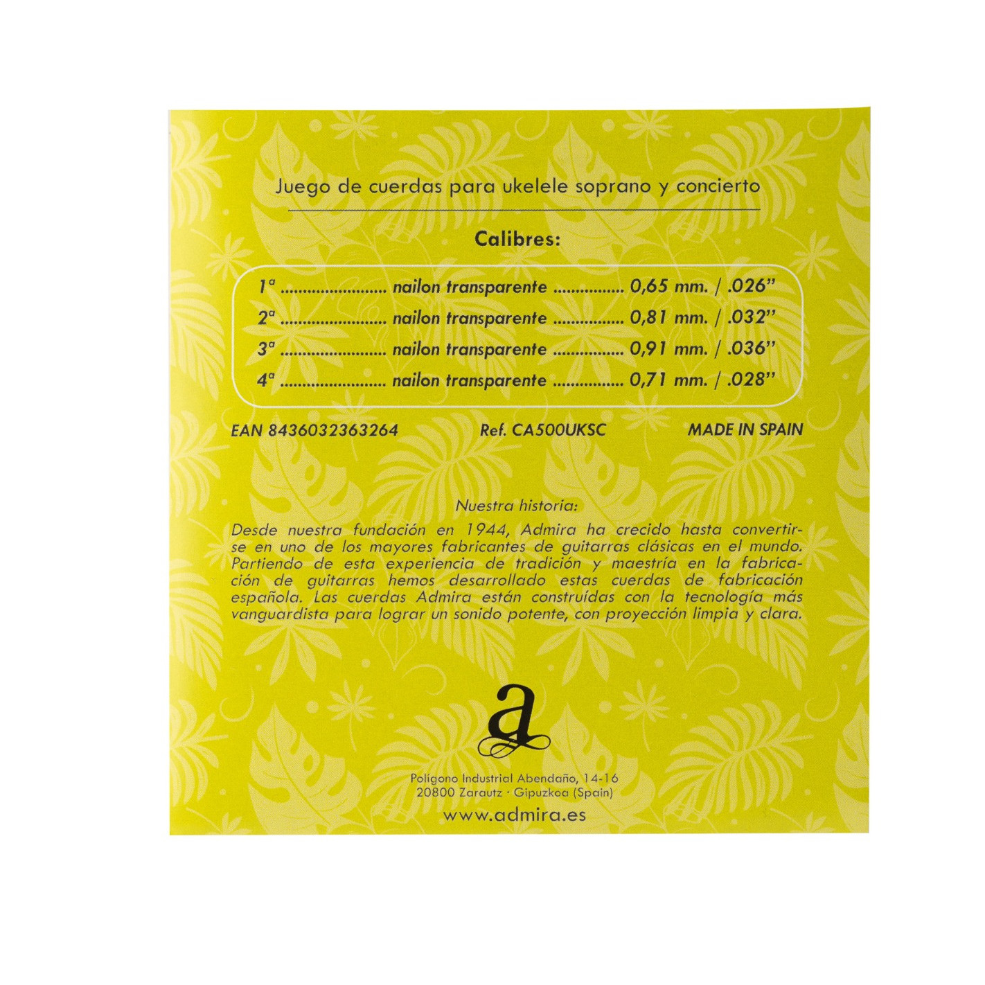 Juego de cuerdas para Ukelele Soprano y Concierto Admira CA500UKSC nylon trasnparente.