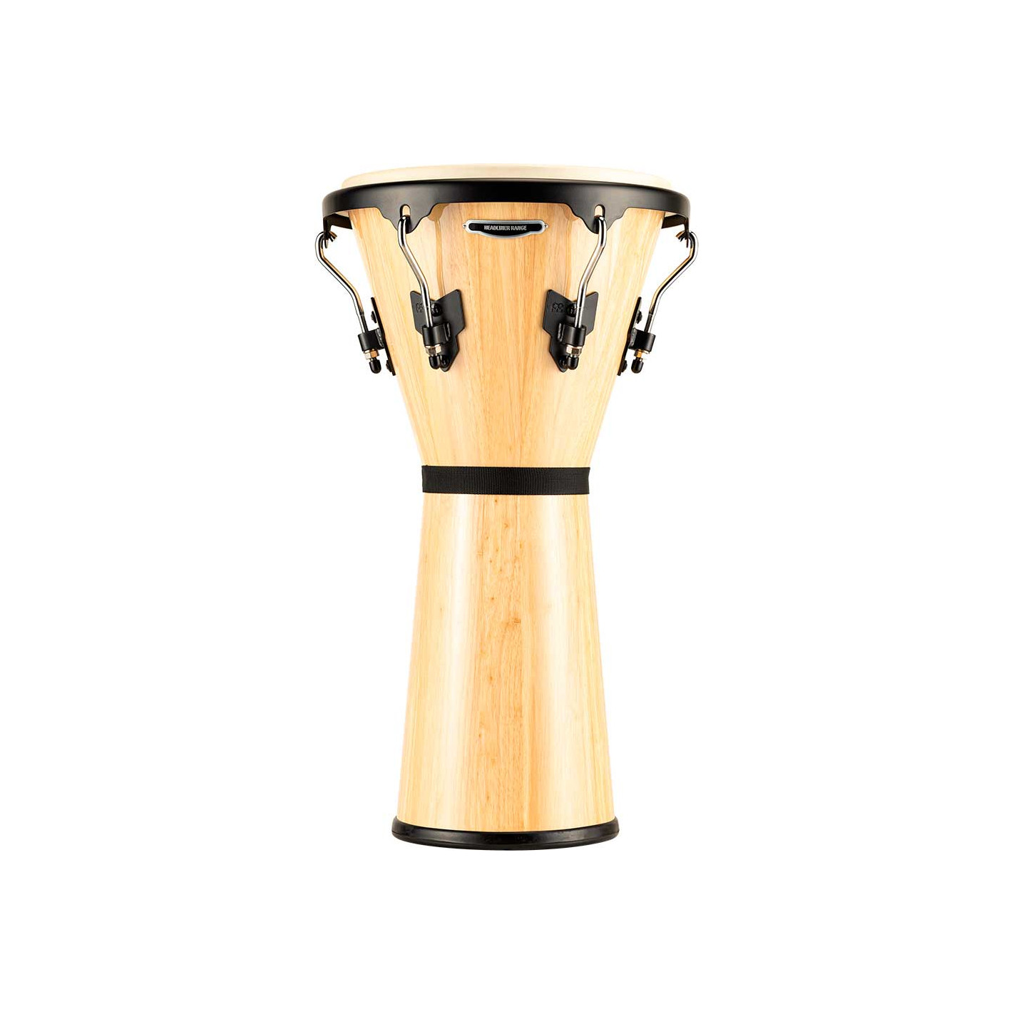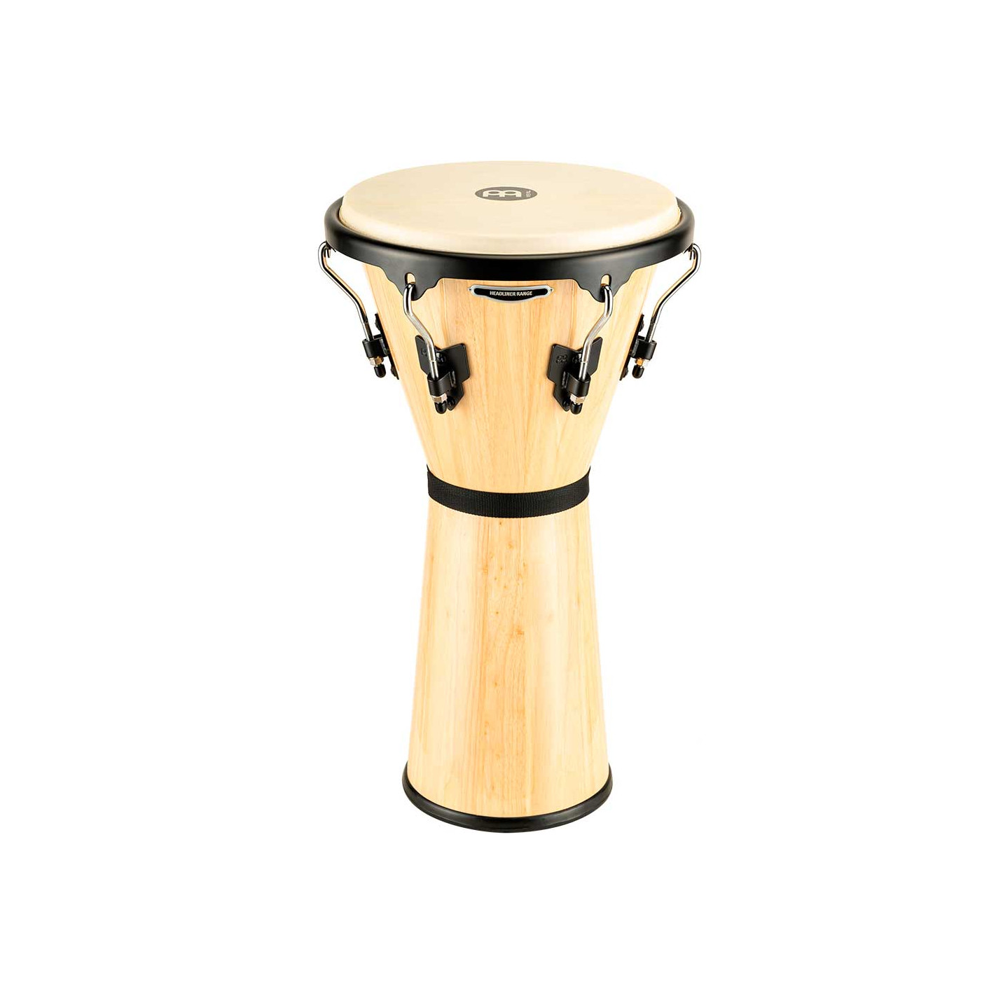 DJEMBE 'Djembé de madera 12 1/2''. Los Djembes Headliner producen un sonido clásico con bajos profundos y agudos explosivos. El diseño de los cascos y el montaje de los parches de piel de cabra seleccionados a mano. Esta forma hace que sea increíblemente fácil y cómodo tocar el instrumento acuñado entre las rodillas.
