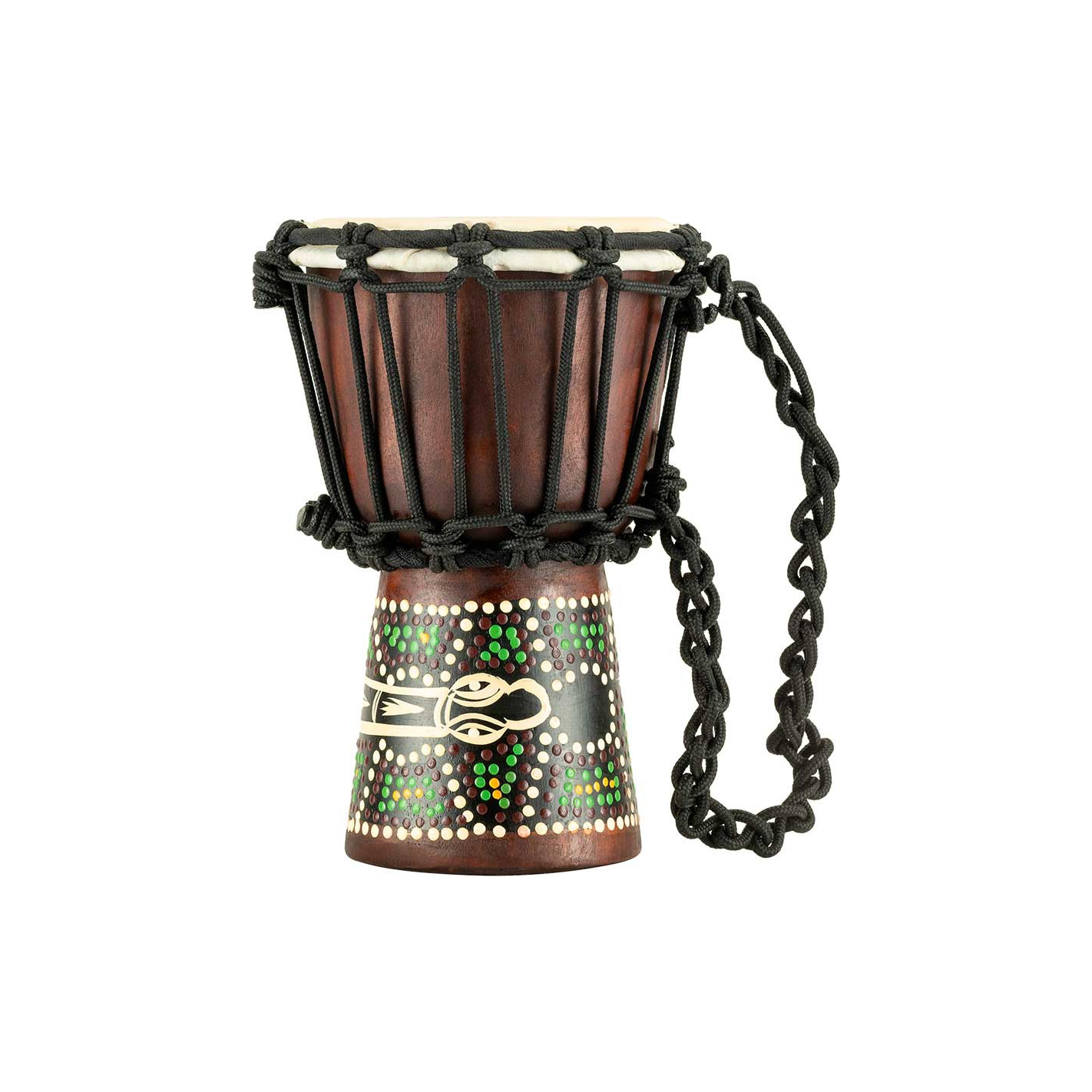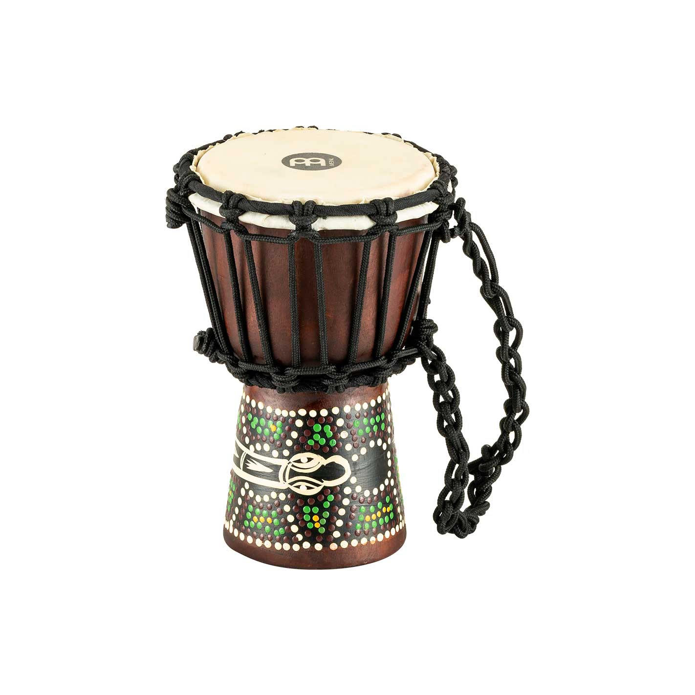 DJEMBE 'Djembé de madera tamaño 4 1/2''. Equipado con parches de piel de cabra seleccionadas a mano y cuerdas de afinación de nylon para proporcionar una afinación óptima. Los impresionantes djembes de la serie Headliner de Meinl destacan por su arte gráfico tradicional y exótico. 100% hechos a mano de manera minuciosa y alcanzando las alta exigencias de calidad de Meinl.