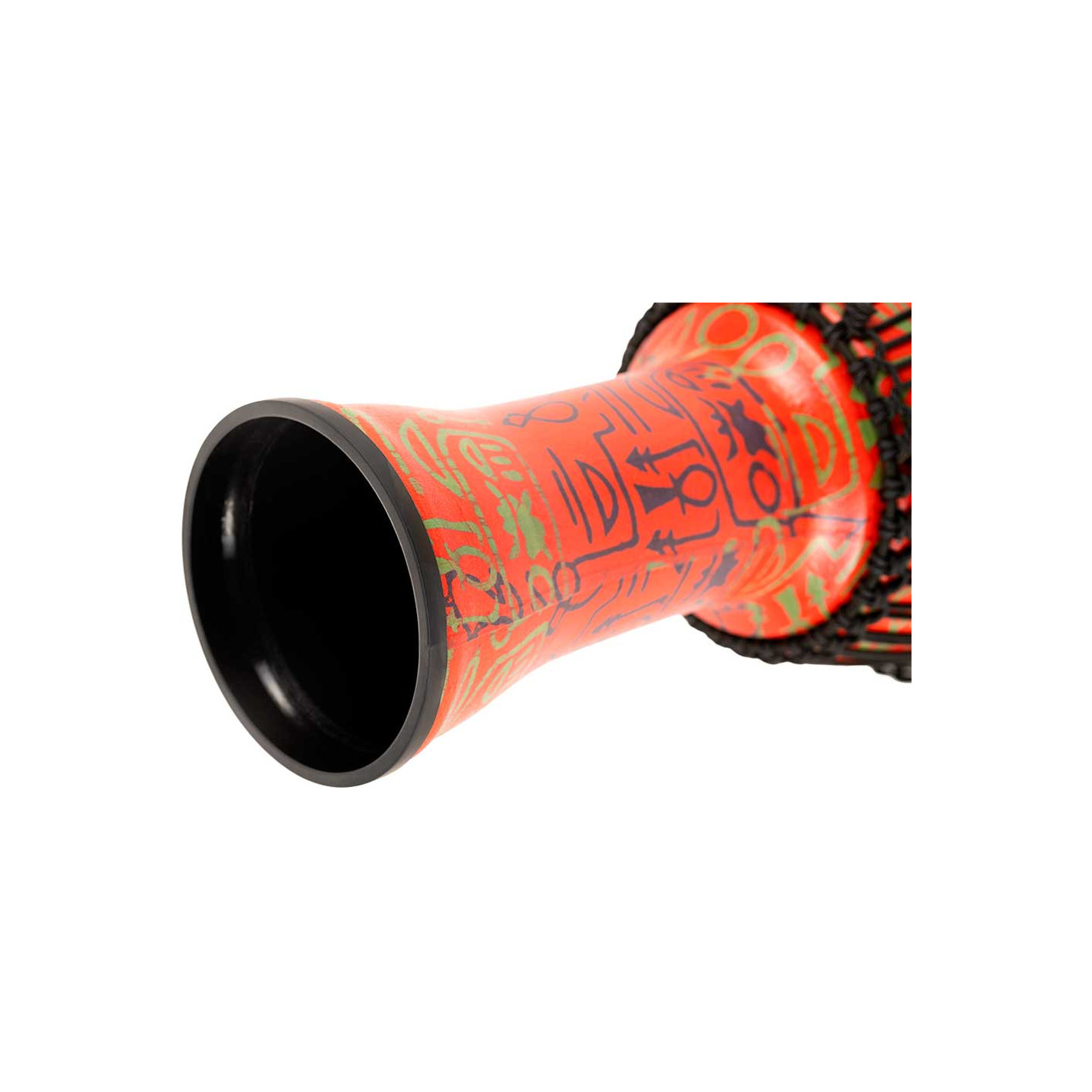 DJEMBE 'Djembé de 12''. Los Djembes de la Serie de Travel de Meinl están diseñados para ser portados a cualquier parte. El casco está hecha de plástico, por lo que el instrumento es extremadamente liviano y robusto. El uso de plástico dio a los desarrolladores de producto en Meinl la oportunidad de ahorrar un 20% más de peso en comparación con el modelo de fibra de vidrio. Además, este material liviano también vibra de manera fácil lo que imprime al sonido agudos realmente vibrantes y graves increiblemente profundos.