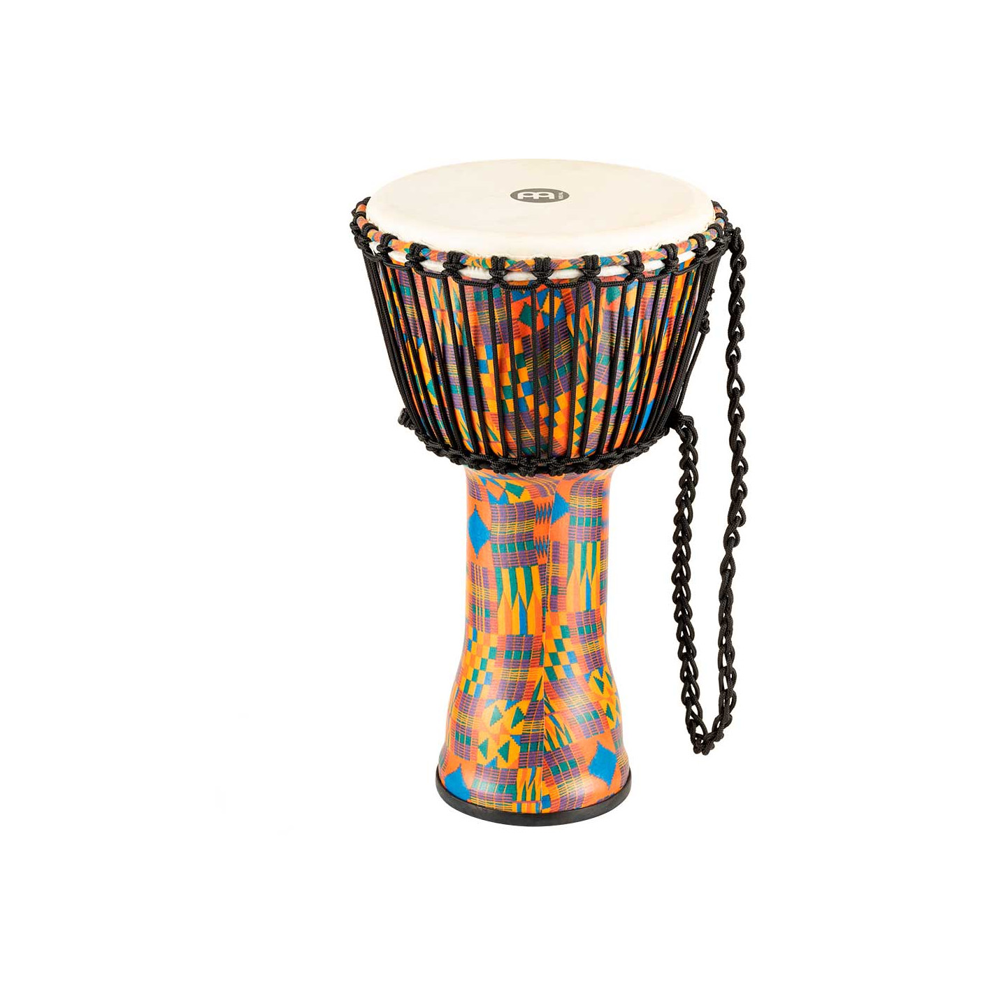DJEMBE 'Djembé de 10''. Los Djembes de la Serie de Viajes Meinl encuentran su vocación ''en el camino''. La carcasa del Travel Djembe está hecha de plástico, por lo que el instrumento es extremadamente liviano y robusto. El uso de plástico para Travel Djembe dio a los desarrolladores de productos en Meinl la oportunidad de ahorrar un 20% más de peso en comparación con el modelo de fibra de vidrio. Además, este material liviano también permite características de vibración muy fáciles y cuenta con una dirección muy sensible y directa con pronunciados agudos bajos y asertivos.
