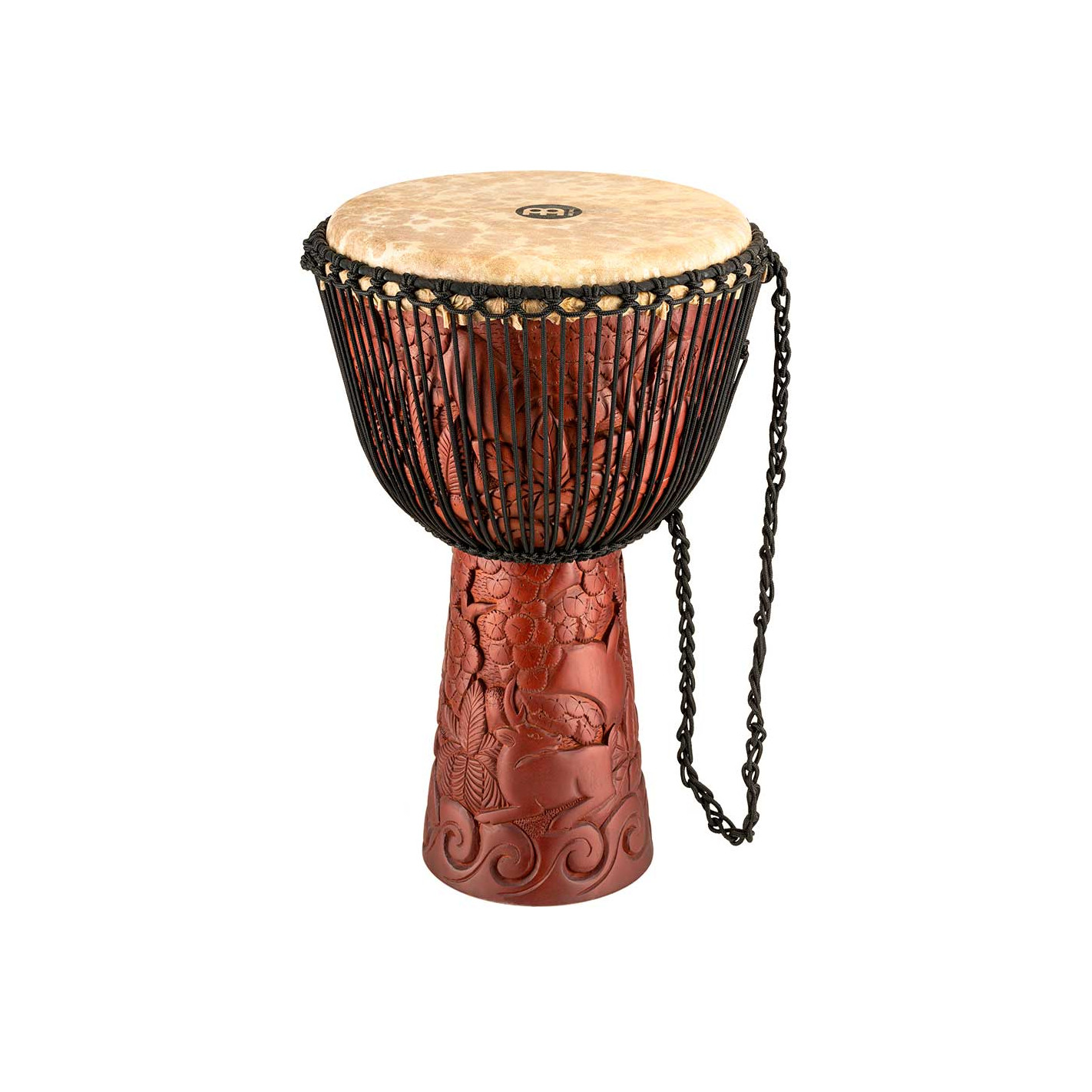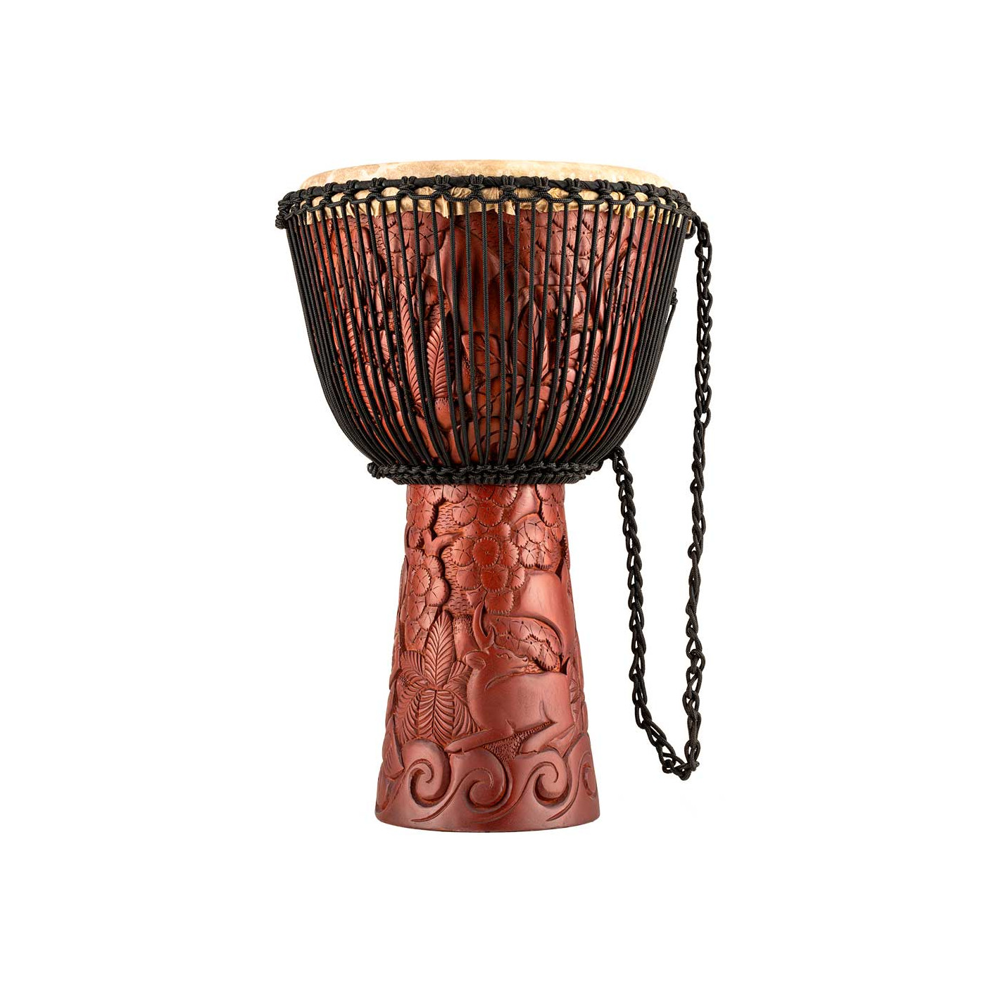 DJEMBE 'Djembé profesional de madera tamaño 14''. Equipado con parches de piel de cabra seleccionadas a mano y cuerdas de afinación de nylon para proporcionar una afinación óptima. Los impresionantes djembes de la serie Profesional de Meinl destacan por su arte gráfico tradicional y exótico tallados a mano desde una pieza sólida de madera.