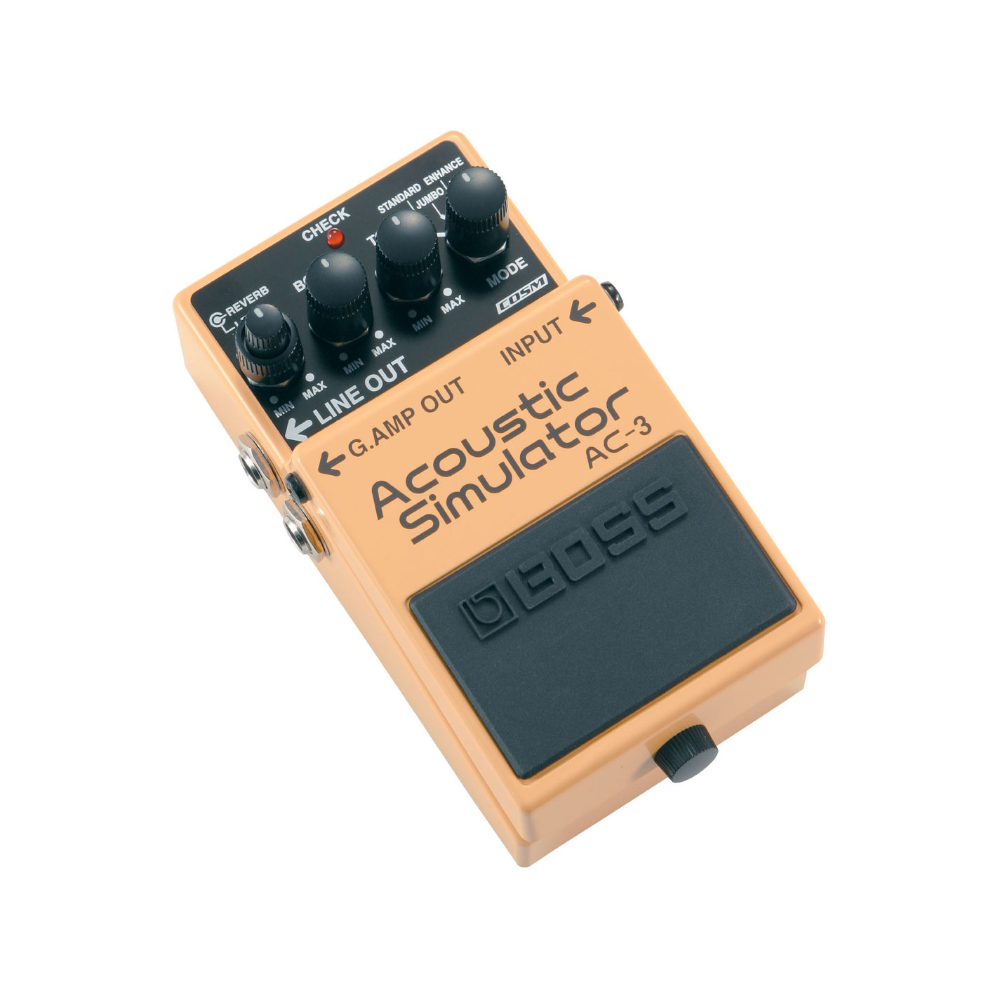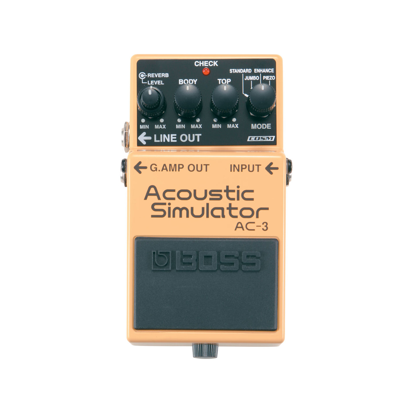 El AC-3 Acoustic Simulator es el nuevo pedal compacto de BOSS mejorado con la tecnología COSM. Utiliza la tecnología de modelado única de Roland para transformar cualquier guitarra eléctrica en una fenomenal guitarra acústica. Se ha añadido una nueva reverberación y ruta de salida versátil para ofrecer sonidos de guitarra acústica más realistas. El AC-2 actual ha permitido a muchos guitarristas crear sonidos de guitarra acústica con una guitarra eléctrica. Con el AC-3 se mejora la capacidad del AC-2, con la reverberación añadida y DSP más innovador que se adapta a los sonidos de guitarra acústica. Con la instalación de la tecnología de modelado COSM, el nuevo pedal AC-3 es único en el mercado.