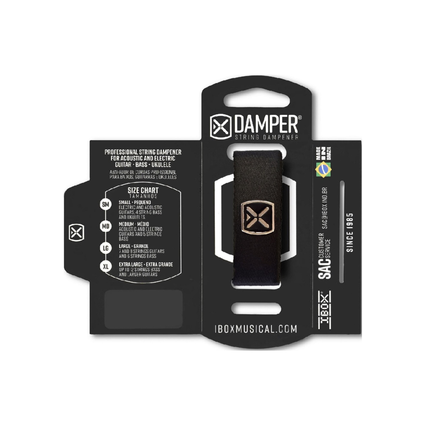 El Ibox Damper es un invento revolucionario que permite al guitarrista/bajista, olvidarse de los sonidos indeseables creados por la vibración de otras cuerdas sonando al aire o notas con demasiado sustain. Con el Ibox Damper, podrás sustituir los típicos pañuelos o gomas del pelo que históricamente han estado usando los músicos. Utilízalo para tus grabaciones en estudio Ibox Damper para todos esos guitarristas mas metaleros o para los acústicos que utilizan ténicas como el tapping a dos manos.