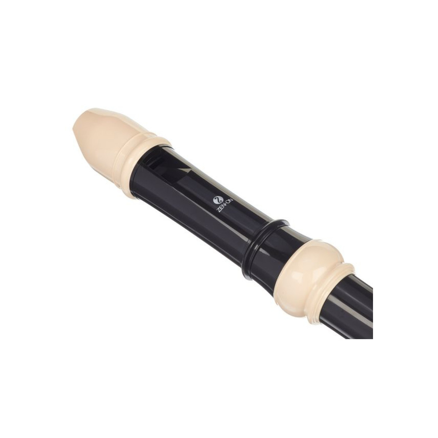Flauta soprano con digitación barroca y doble agujero, de plástico, con funda.