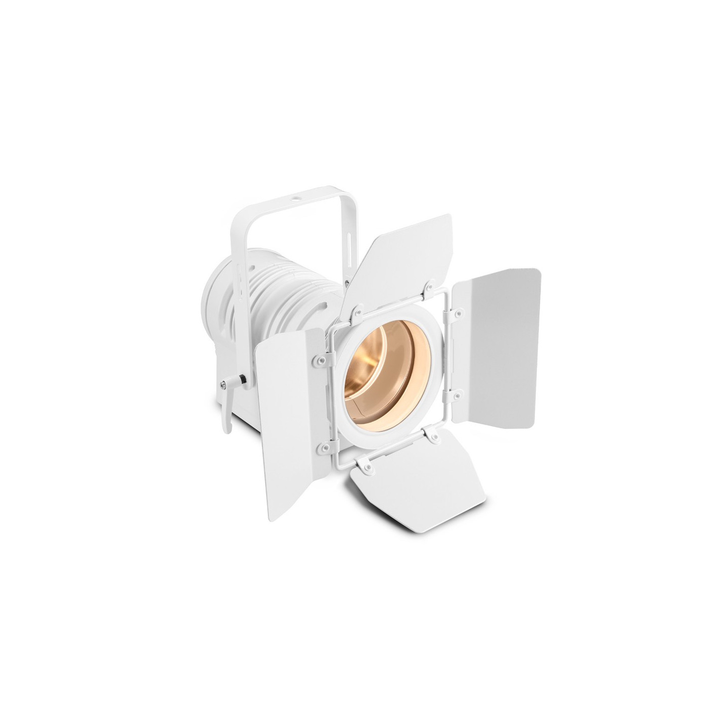 Foco para teatro TS 40 WW WH con lente plano-convexa y LED blanco cálido de 40W y carcasa blanca.