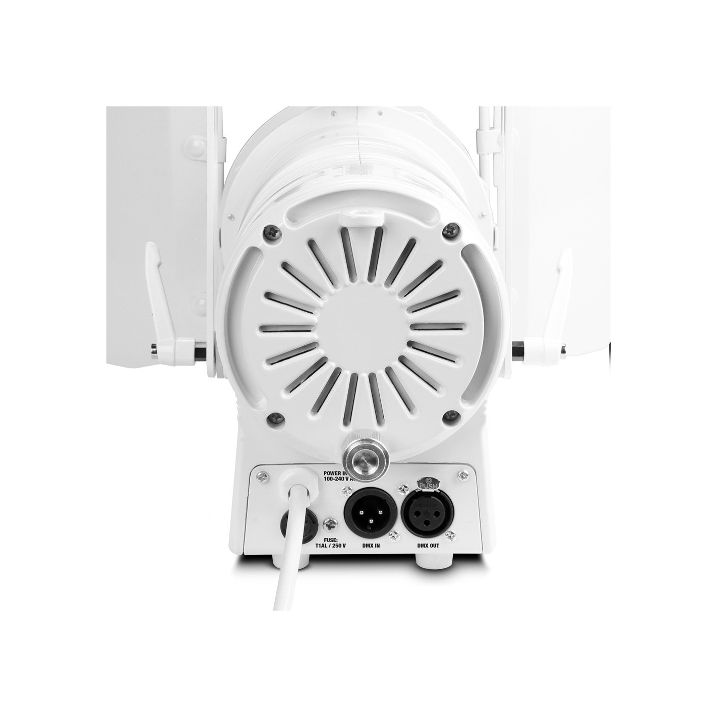 El LED blanco cálido de 40 W del foco, compatible con RDM y con una temperatura de color de 3200 Kelvin, ofrece una intensa luminosidad de 18.000 lux a una distancia de 1 m.