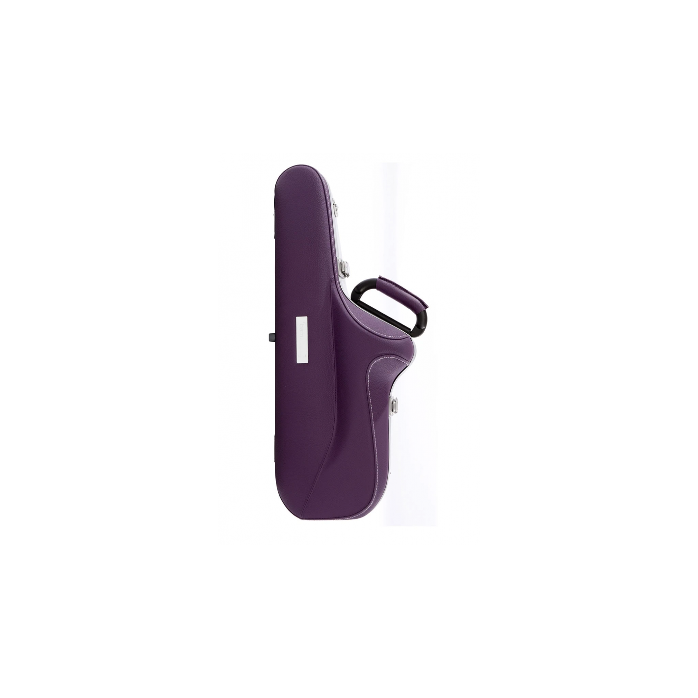 Estuche de saxo alto con tapa superior y base cubiertas con piel natural. Color violeta.