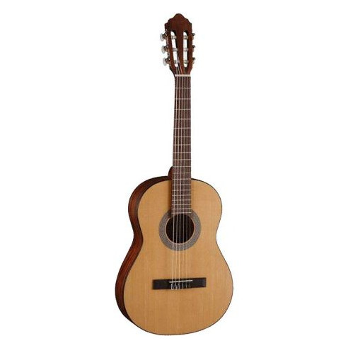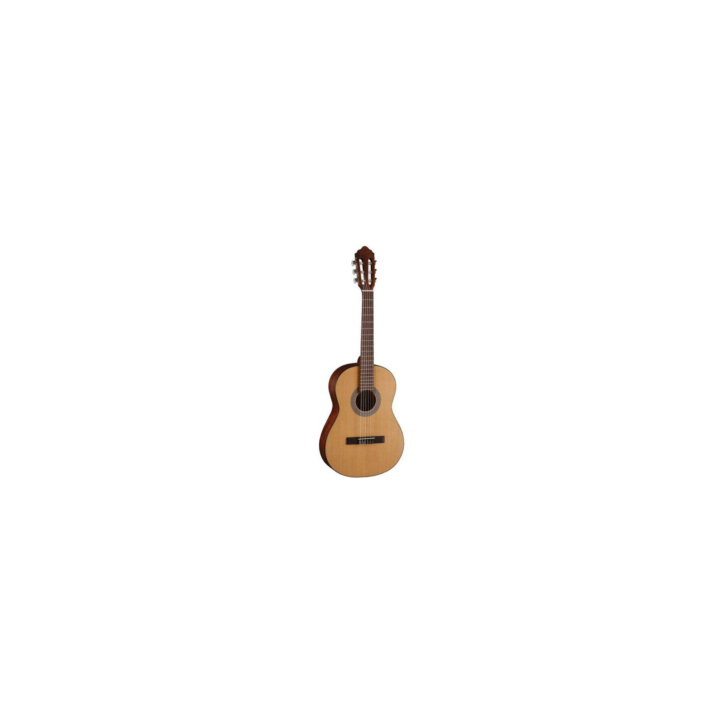 Guitarra clásica de tamaño 1/2. Tapa de abeto. Aros, fondo y mástil de caoba. Diapasón y puente de palo rosa. . Acabado Open Pore.