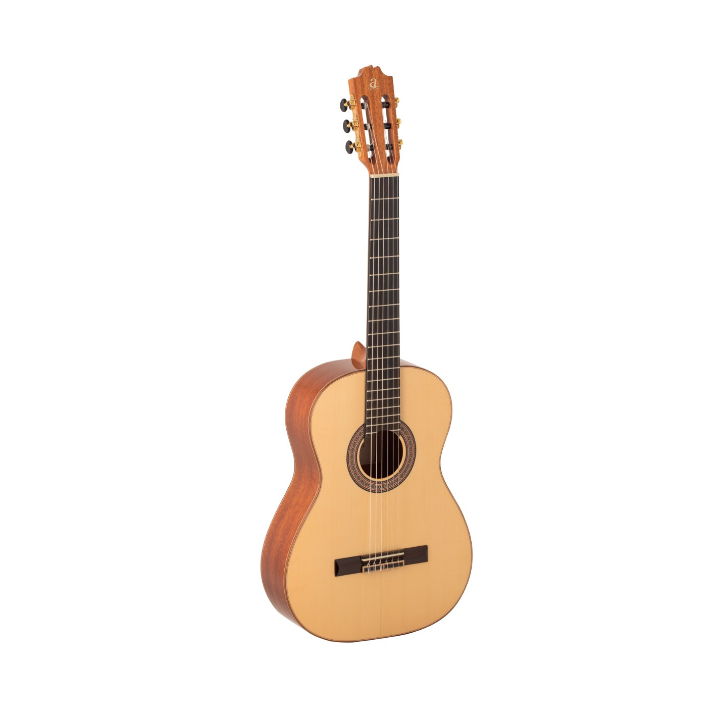 Nuevo modelo de la Serie Artesanía Admira A45 toda maciza de caoba con tapa de Abeto. Está fabricada con una selección de maderas, combinando el abeto macizo en la tapa y la caoba también macizo en los aros y fondo. Tiene el brazo de tres piezas con refuerzo de Palisandro lo que le confiere mayor estabilidad a la guitarra y un sonido claro y nítido. Admira también la fabrica en versión electrificada Fishman.
