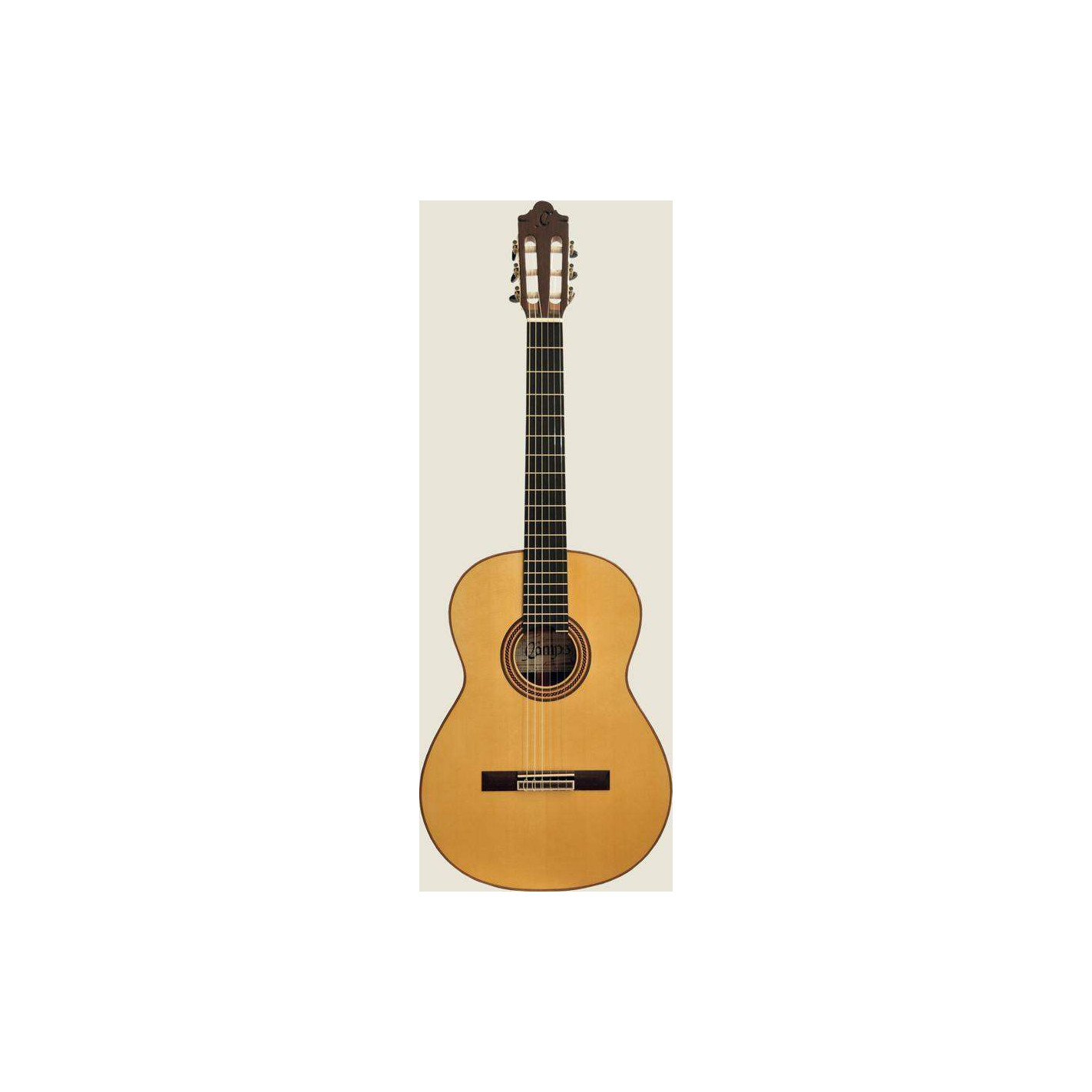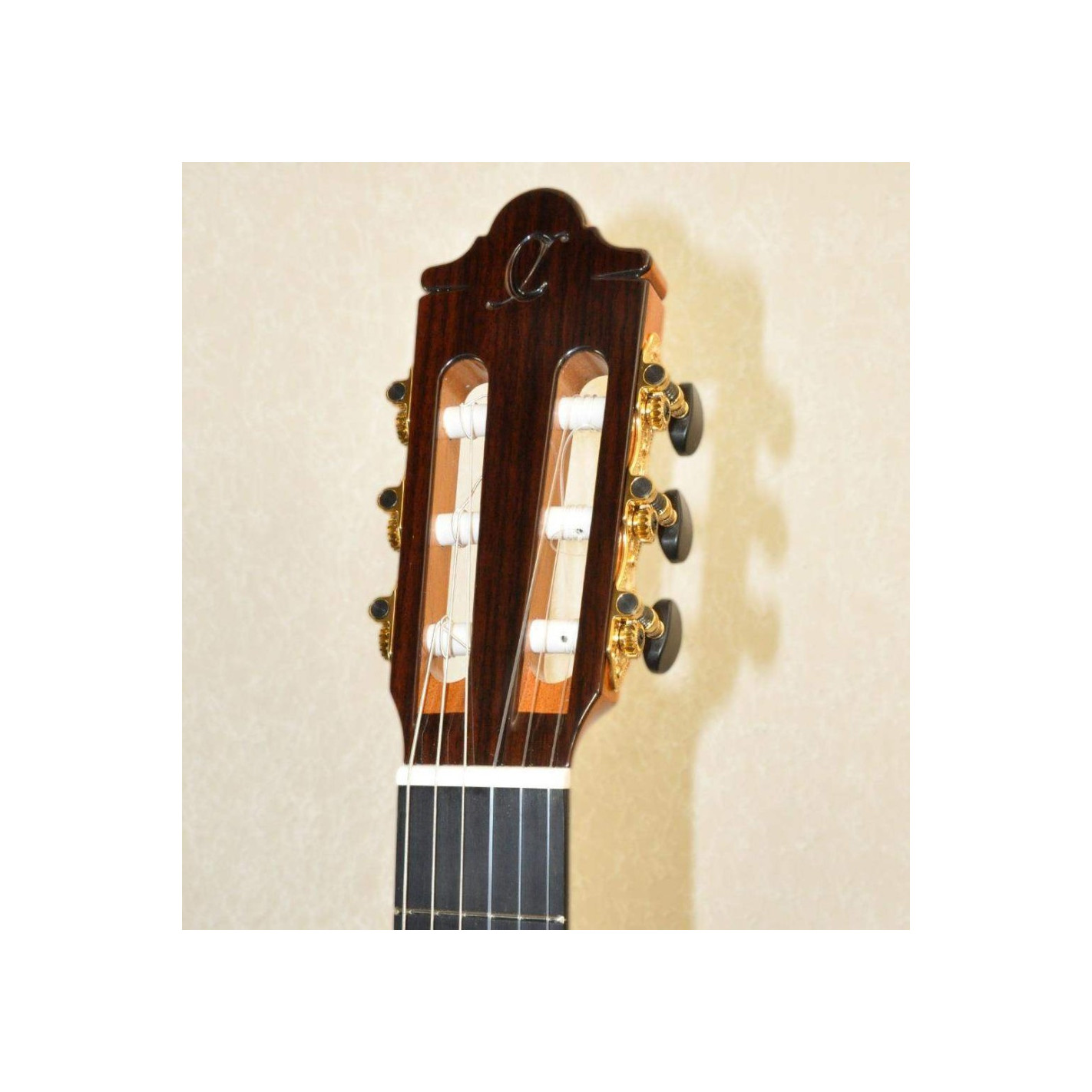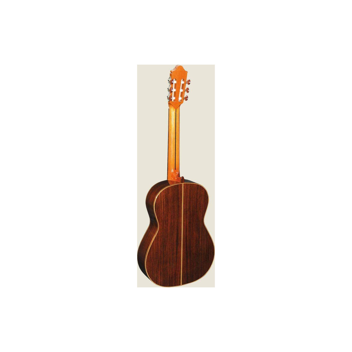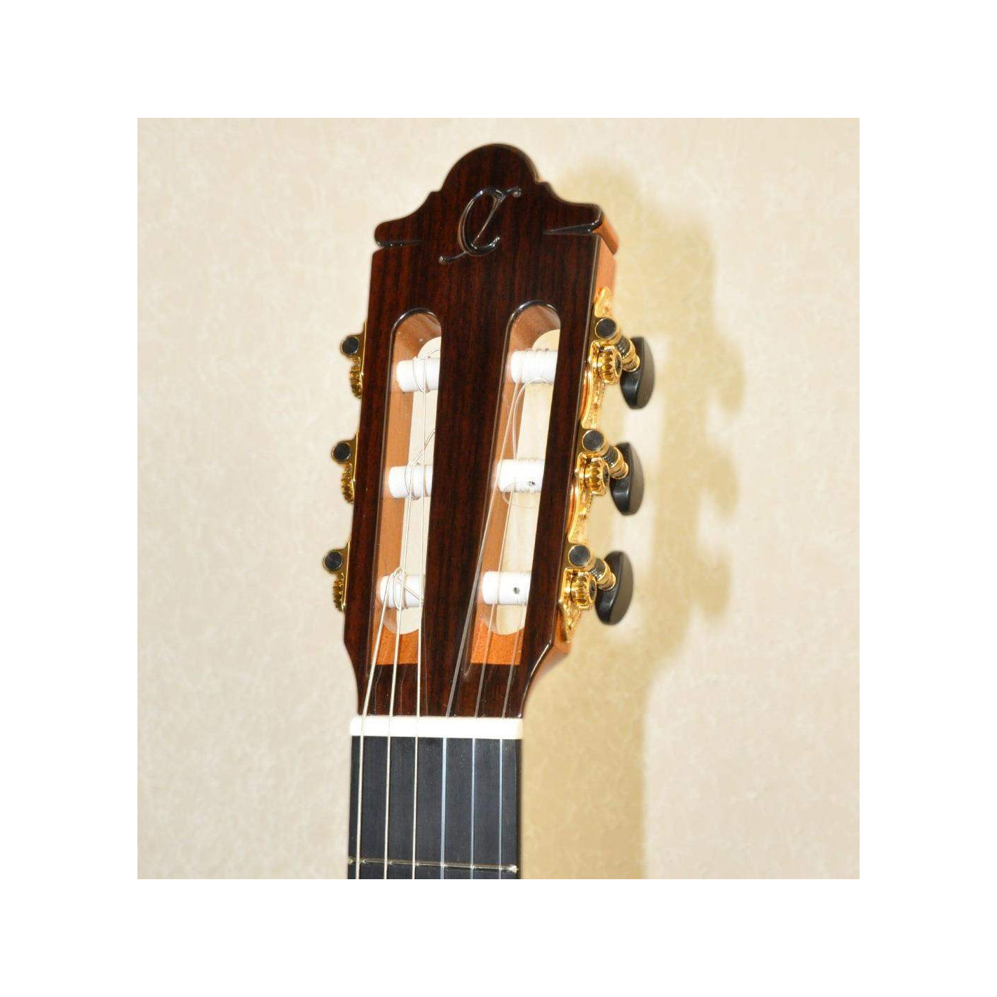 Guitarra de concierto muy atractiva. Se ha prestado mucha atención a los detalles, como la roseta perfectamente elaborada o los múltiples filetes en la tapa y el fondo, todos combinados con acierto.