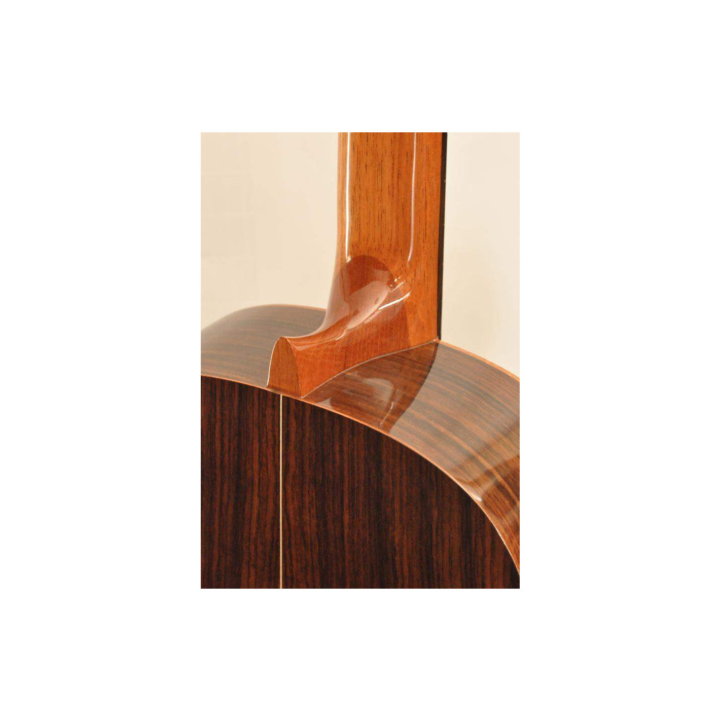 Modelo ligero y cómodo. Ofrece un sonido cálido y potente. El fondo y los aros son de palisandro de la India. Incorpora un filete de arce. Acabados de calidad en barniz brillante que mantiene la tonalidad natural de la madera.