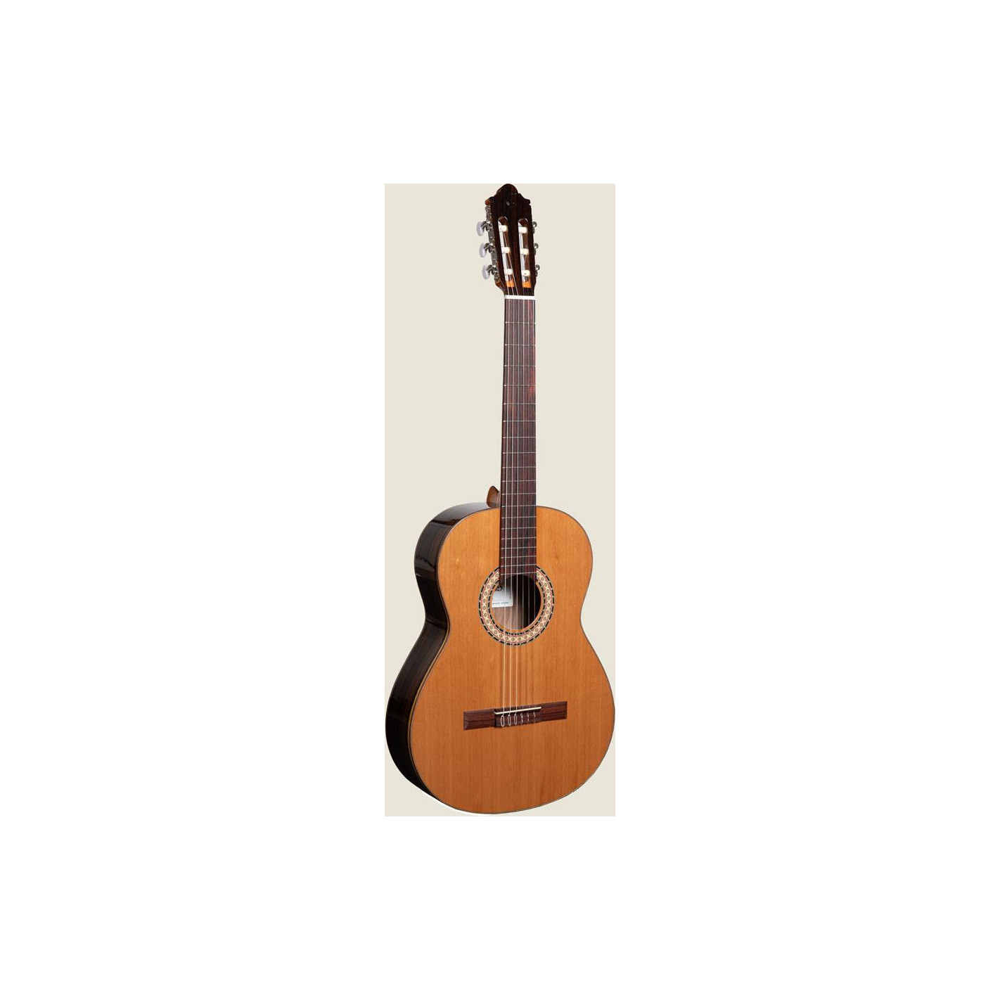 Excelente guitarra a un precio asequible, cómoda y ligera. La tapa, fabricada en abeto macizo, está cuidadosamente seleccionada. El fondo y los aros son de palisandro. Incorpora filetes de madera de caoba y una varilla regulable en el mástil para evitar y resolver los problemas de curvatura. Acabada en barniz brillante. Sonido clásico, cálido y con volumen.