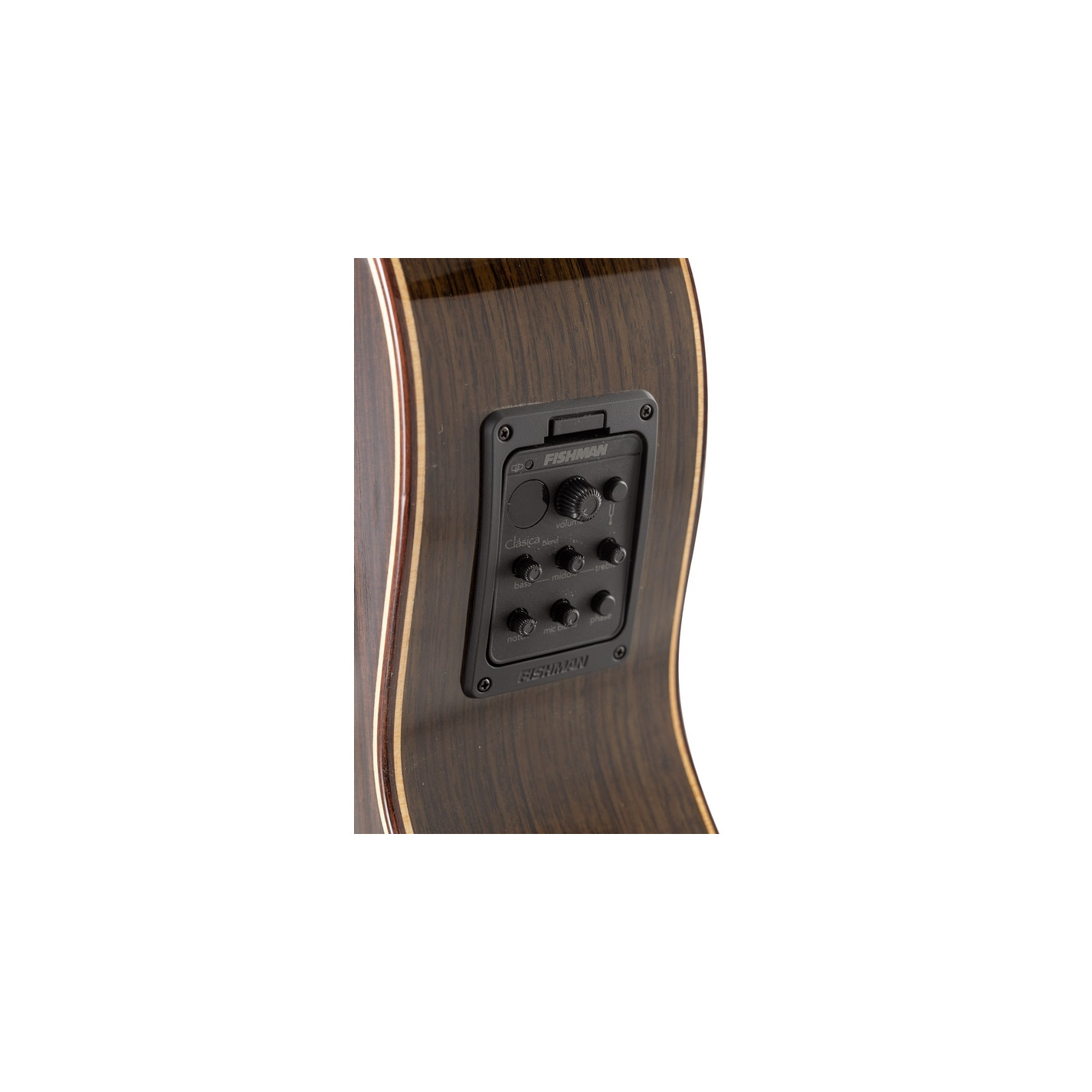 - Preamp Fishman Classic Blend con ecualizador de 3 bandas, afinador y micrófono