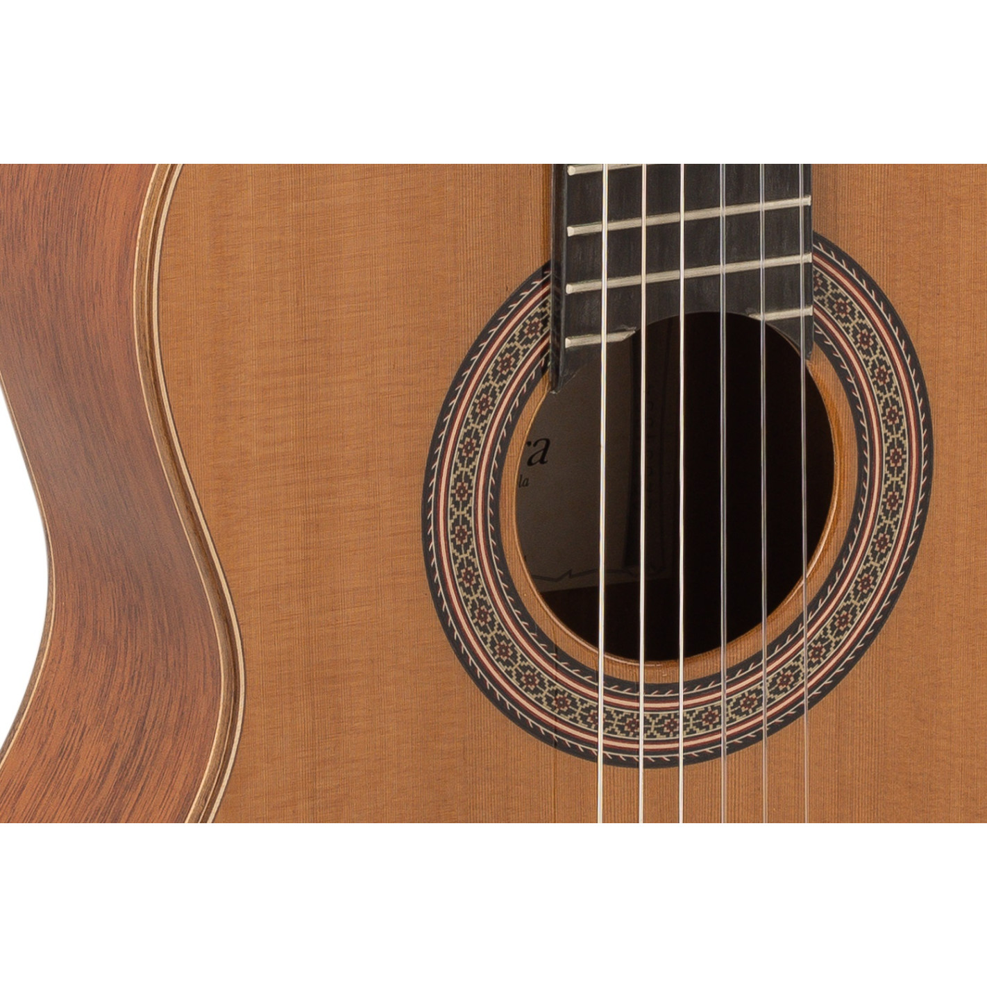 La Admira A40 está fabricada con una selección de maderas, combinando el cedro macizo en la tapa y la caoba también macizo en los aros y fondo. Tiene el brazo de tres piezas con refuerzo de Palisandro lo que le confiere mayor estabilidad a la guitarra y un sonido claro y nítido. Este modelo está disponible con acabado brillo o satinado y también en versión electrificada con preamplificador Fishman.