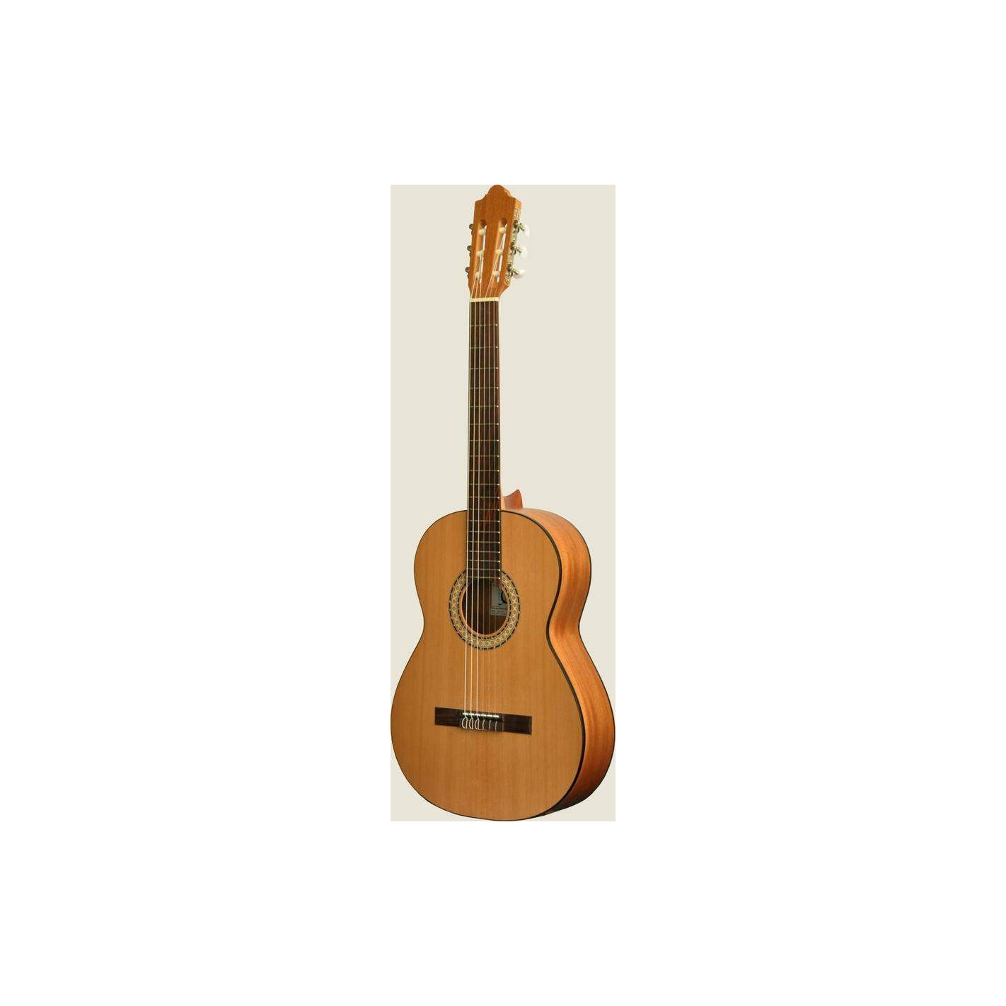 Modelo idóneo para estudiantes recién iniciados ya que es muy ligera y cómoda. La tapa, de cedro macizo, ofrece un sonido cálido y potente. Acabados de calidad en barniz mate que mantienen la tonalidad natural de la madera.