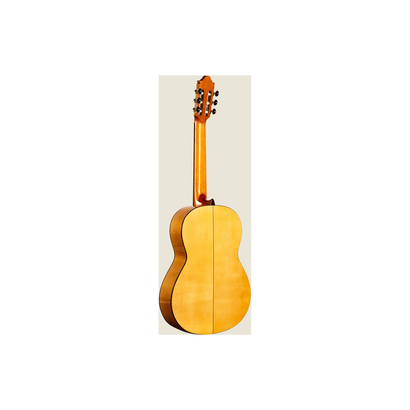 Excelente guitarra a un precio asequible. Primera guitarra en la gama flamenca. Reúne todos los requerimientos para su tocador tanto en aspectos mecánicos (ligereza y comodidad) como sonoros. Tiene una respuesta rápida y los agudos muy brillantes.