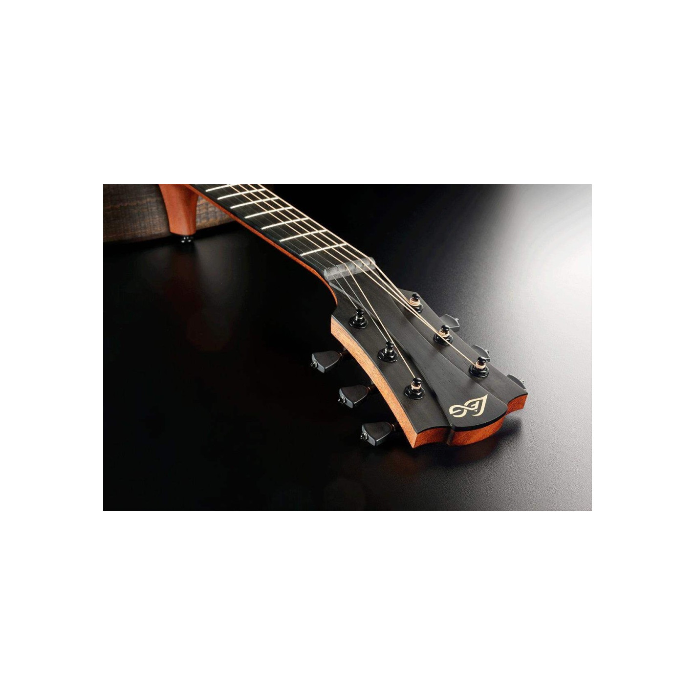 La Sauvage presenta una tapa maciza de Pale Brankowood y un cuerpo de eucalipto ahumado con un aspecto decididamente crudo. El perfecto control del proceso de tropicalización da como resultado una tapa robusta con un sonido equilibrado que se ve amplificado por su fondo redondeado. Se trata de una guitarra original y con carácter, cuyas variaciones en cuanto a formatos (Dreadnought, Auditorium, Parlor, Travel), así como opciones (cutaway, electroacústica, nylon), garantizan que encontrará la que se adapte a tu gusto.