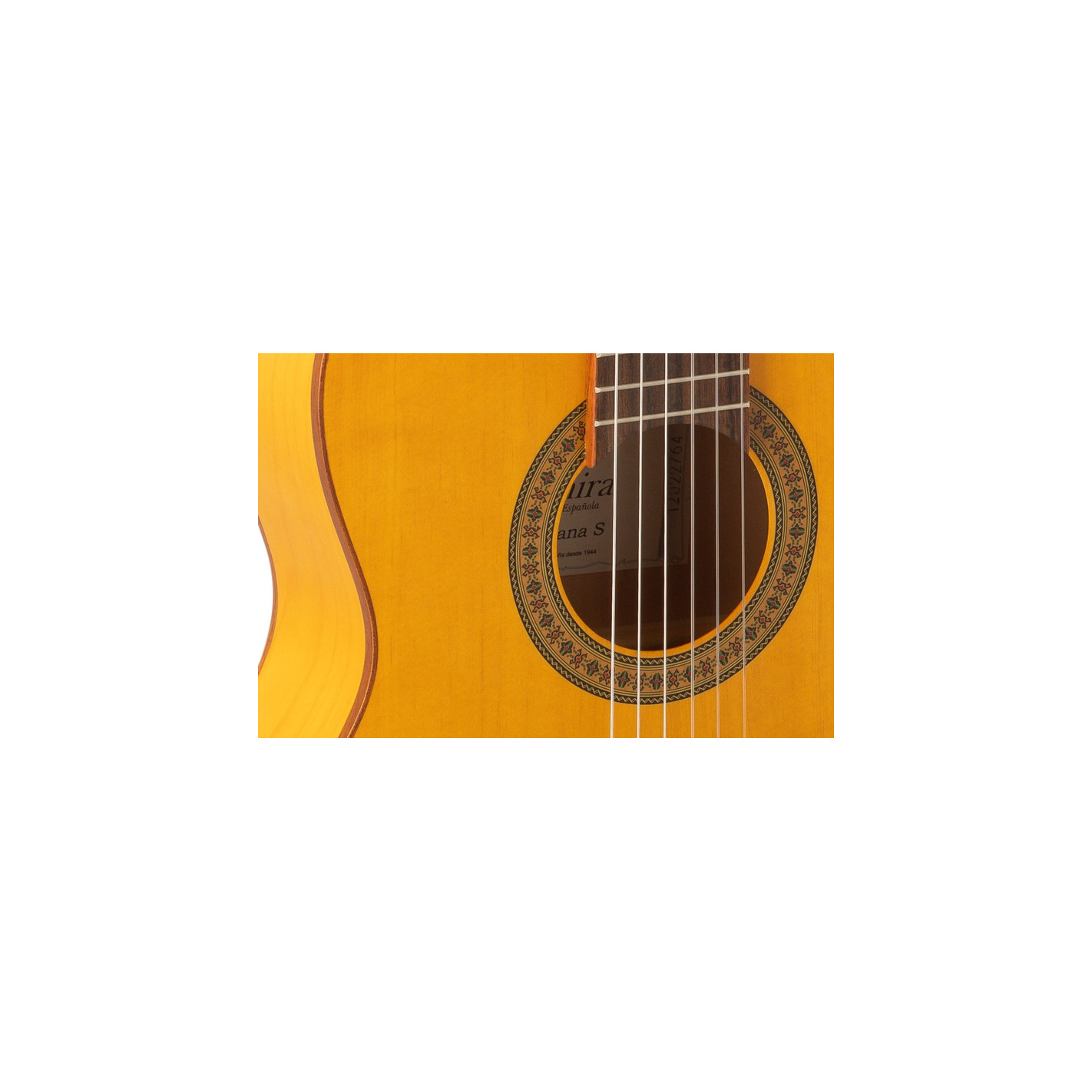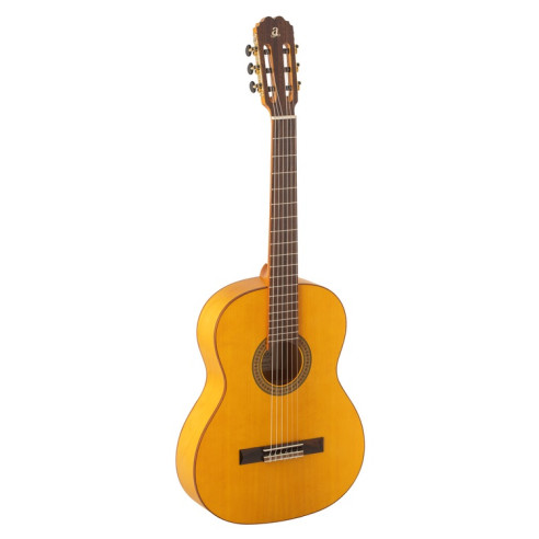 La admira TRIANA, está construida para que sea tu primera guitarra flamenca. Una guitarra cómoda, fácil de tocar y que con su tapa de abeto y los aros y fondos de arce te va a permitir descubrir el maravilloso sonido flamenco. La TRIANA se fabrica en todos estos tamaños y formatos: 3/4, 4/4, satinada, electrificada Fishman con cutaway, electrificada Fishman, electrificada EQ6 con cutaway, electrificada EQ6 y ahora también con el preamplificado Double OS1.