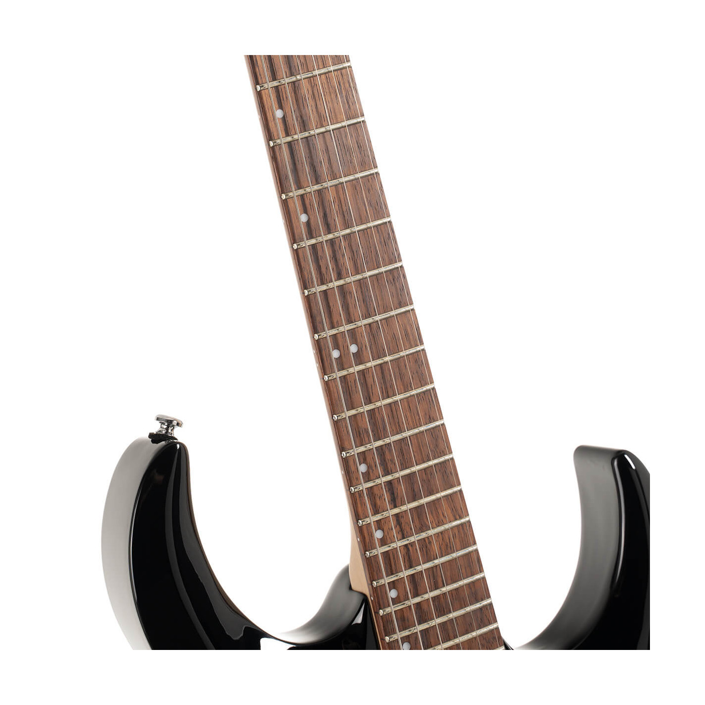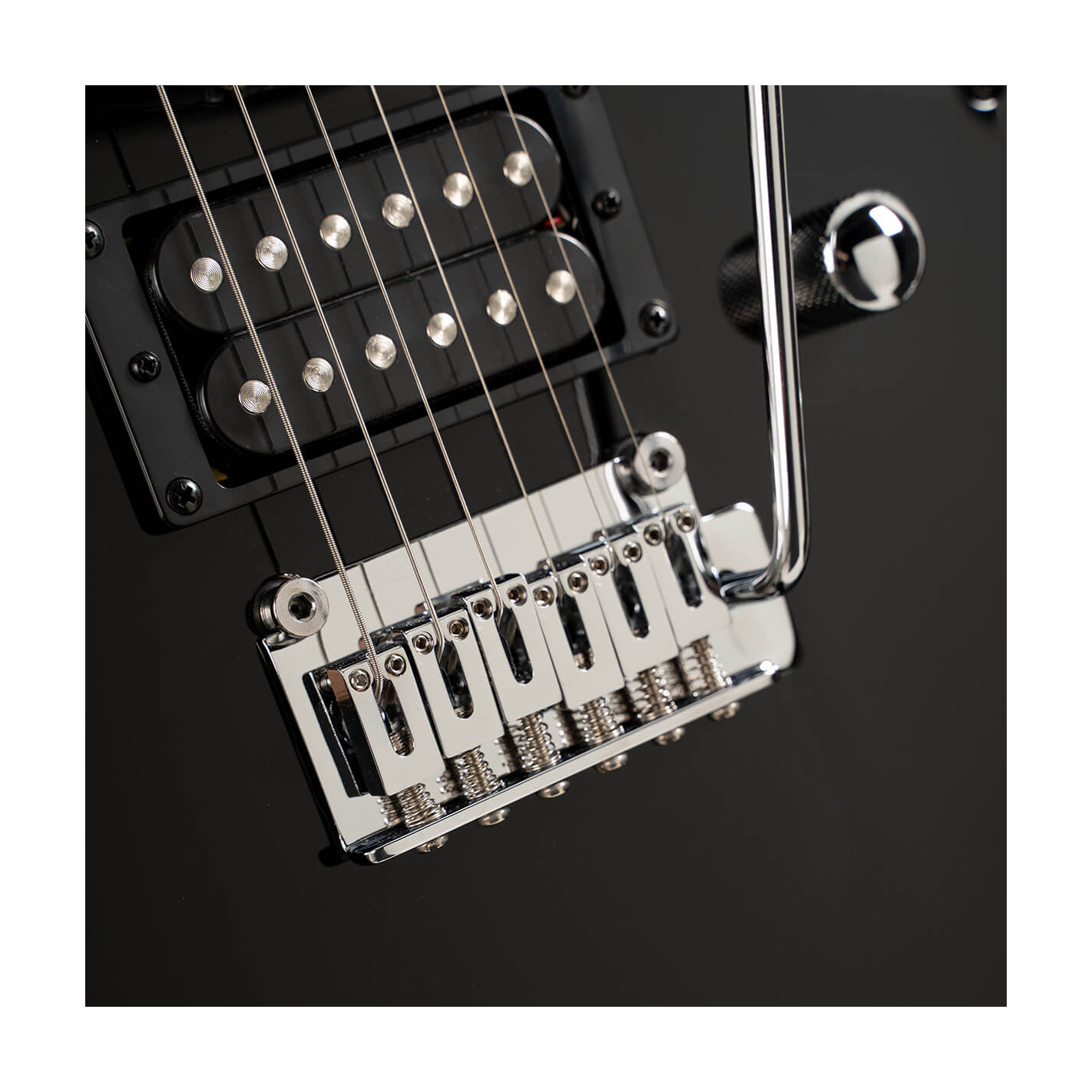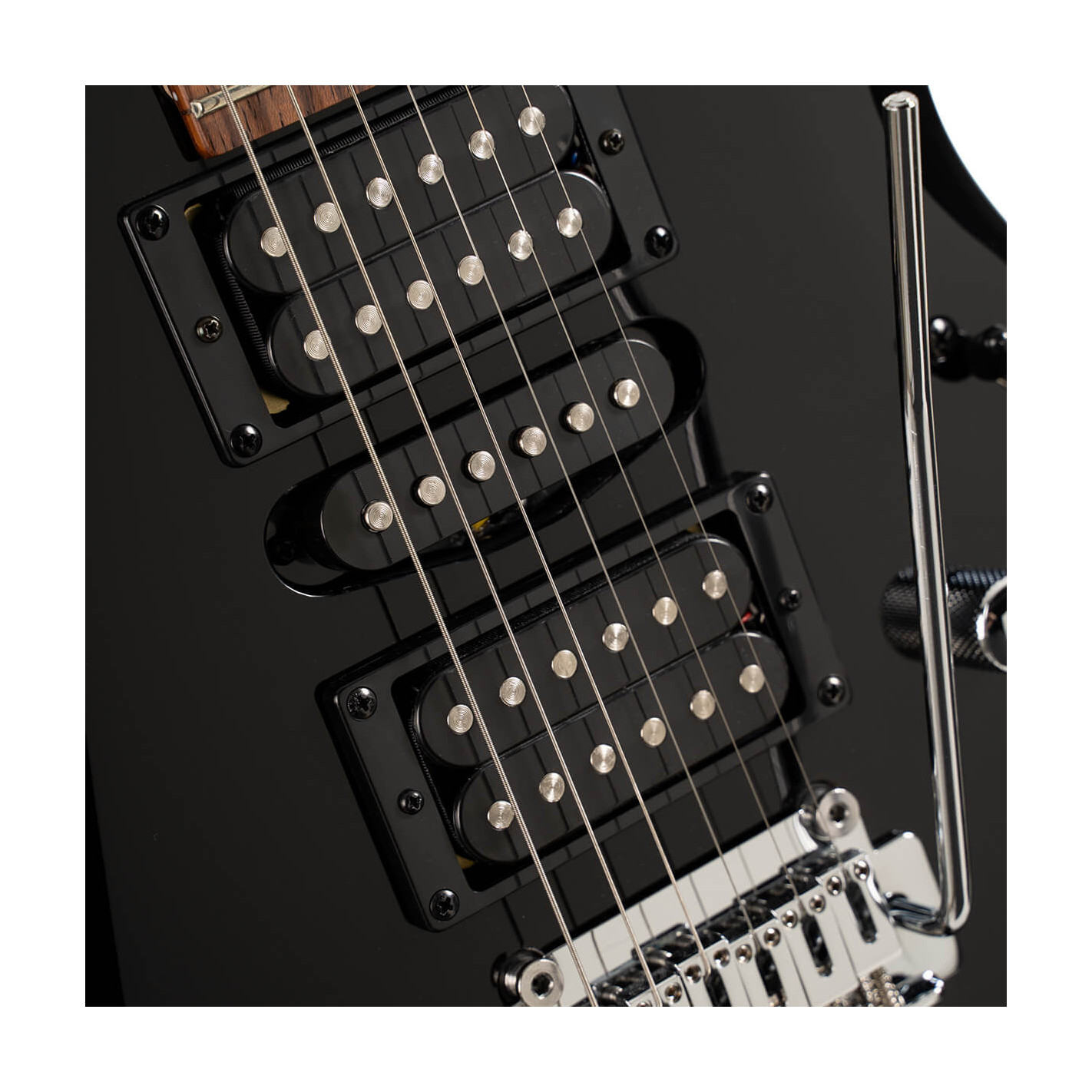 La guitarra presenta 24 trastes con una accesibilidad extremadamente cómoda. El diseño del cuerpo, con su inclinación y forma, está especialmente seleccionado para un perfil «rápido» con un diapasón de 400mm de radio. Para crear un sonido fuerte y nítido, la guitarra está equipada con pastillas Powersound a prueba de ruido, desarrolladas por Cort. La configuración H-S-H permite a la guitarra producir una amplia gama de sonidos ricos, desde limpios y claros hasta potentes e intensos.