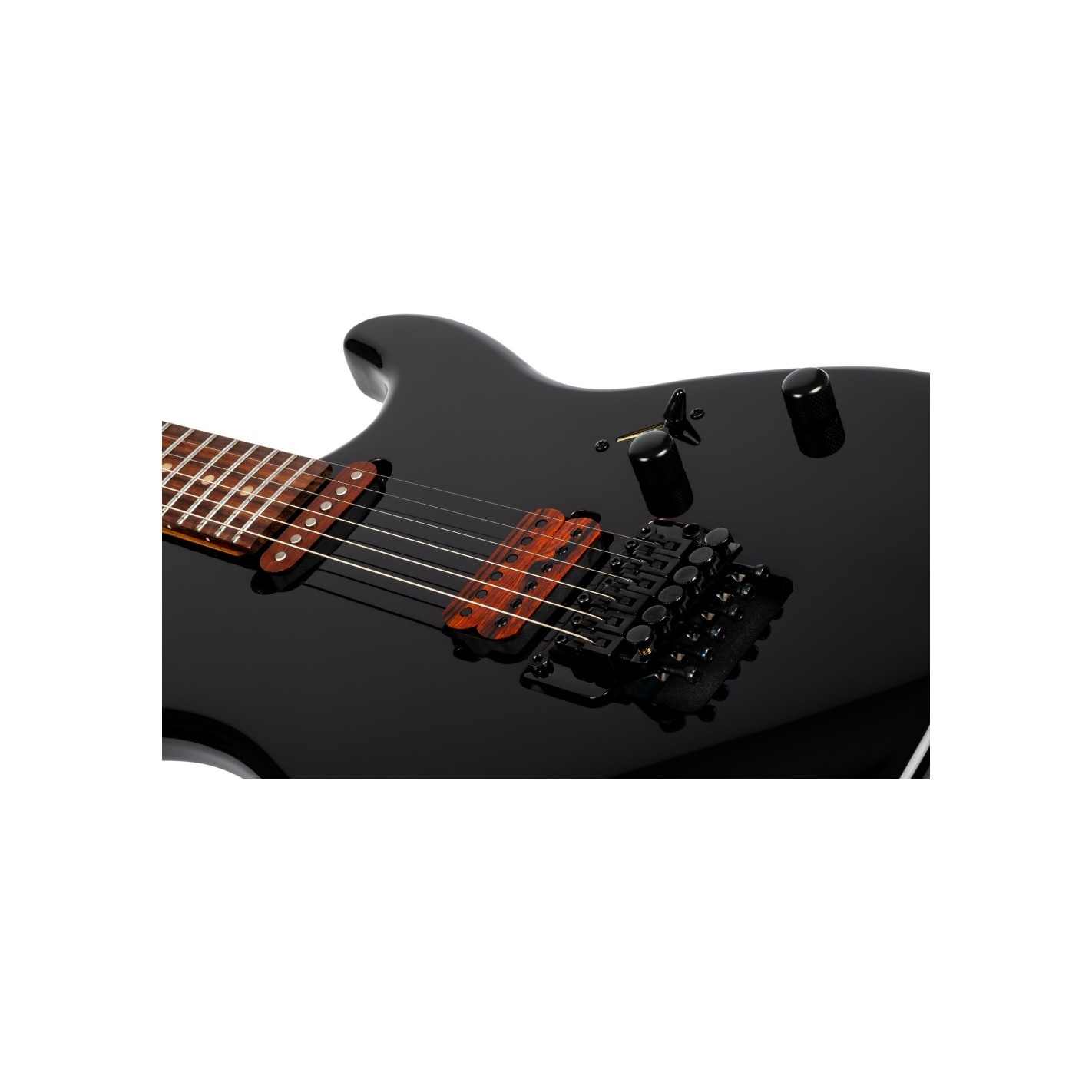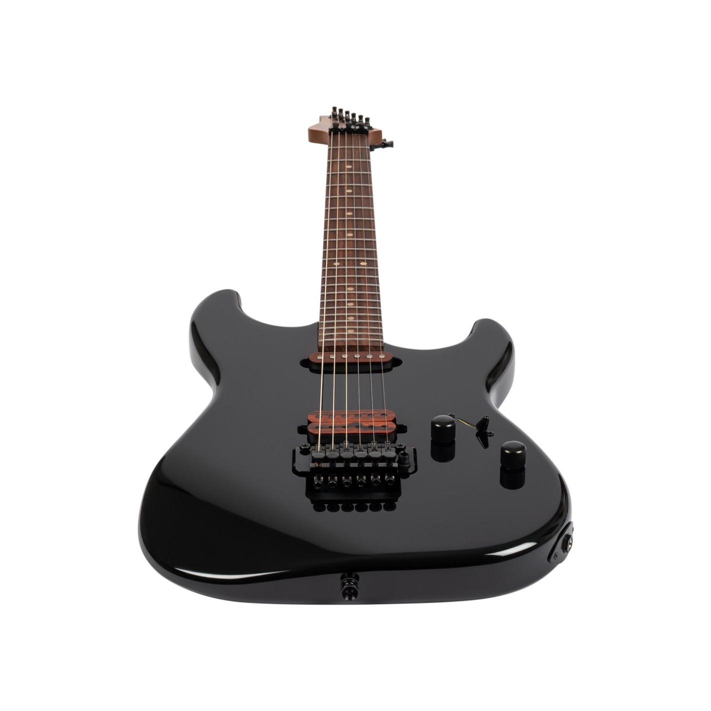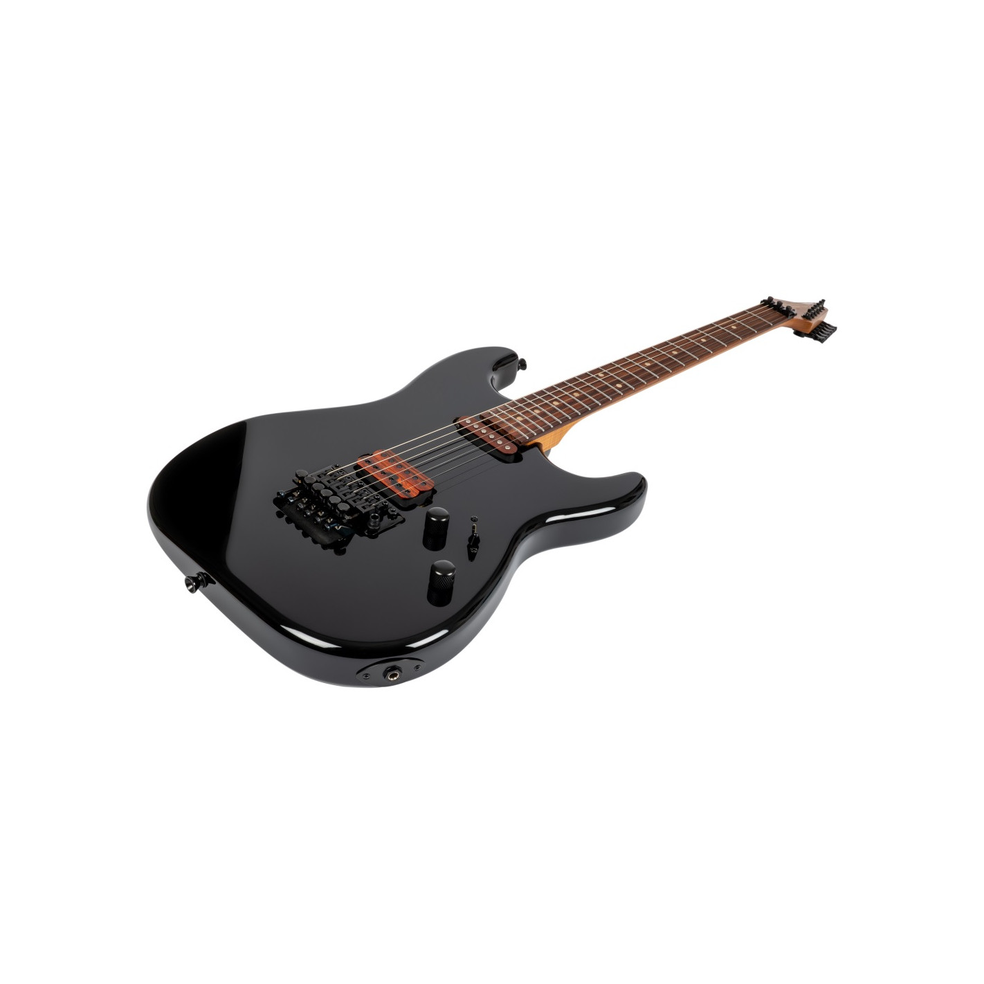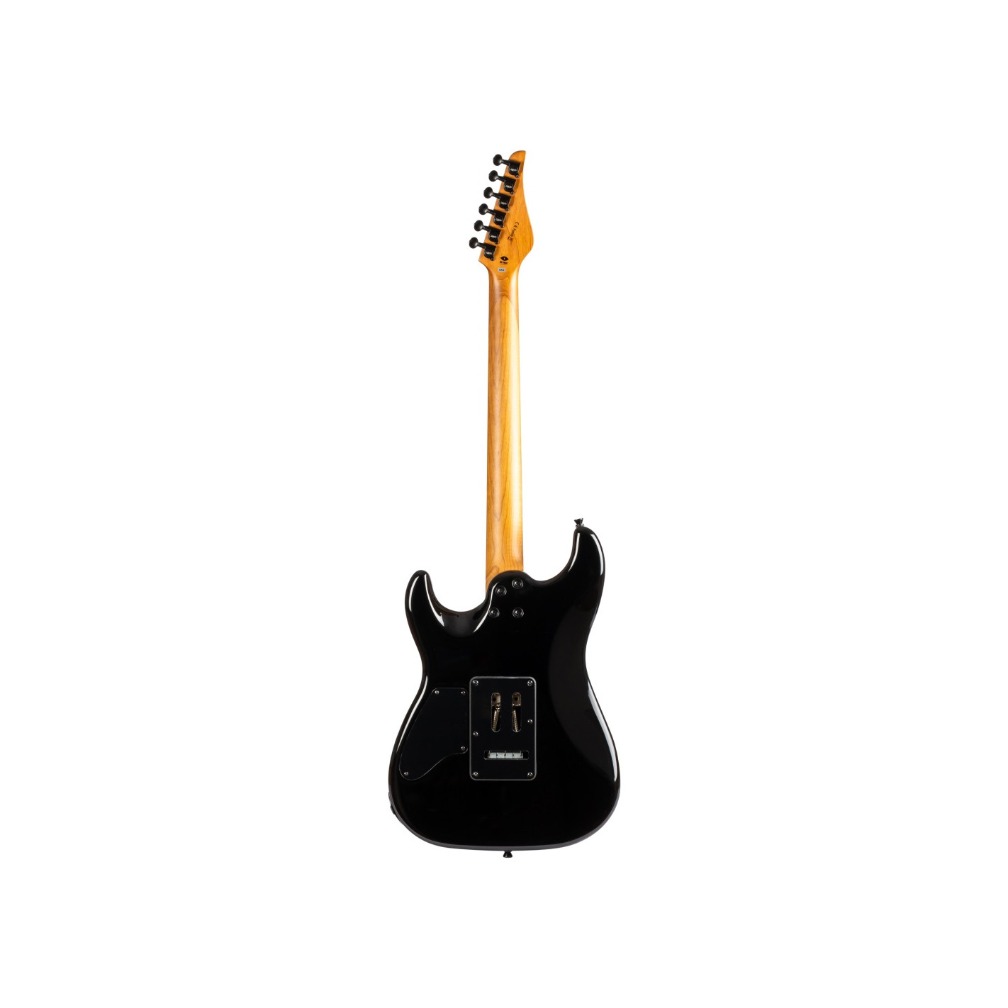 Nuevo modelo tipo Strato con diapasón y mástil de arce tostado, cubiertas de las pastillas en madera y acabado negro.