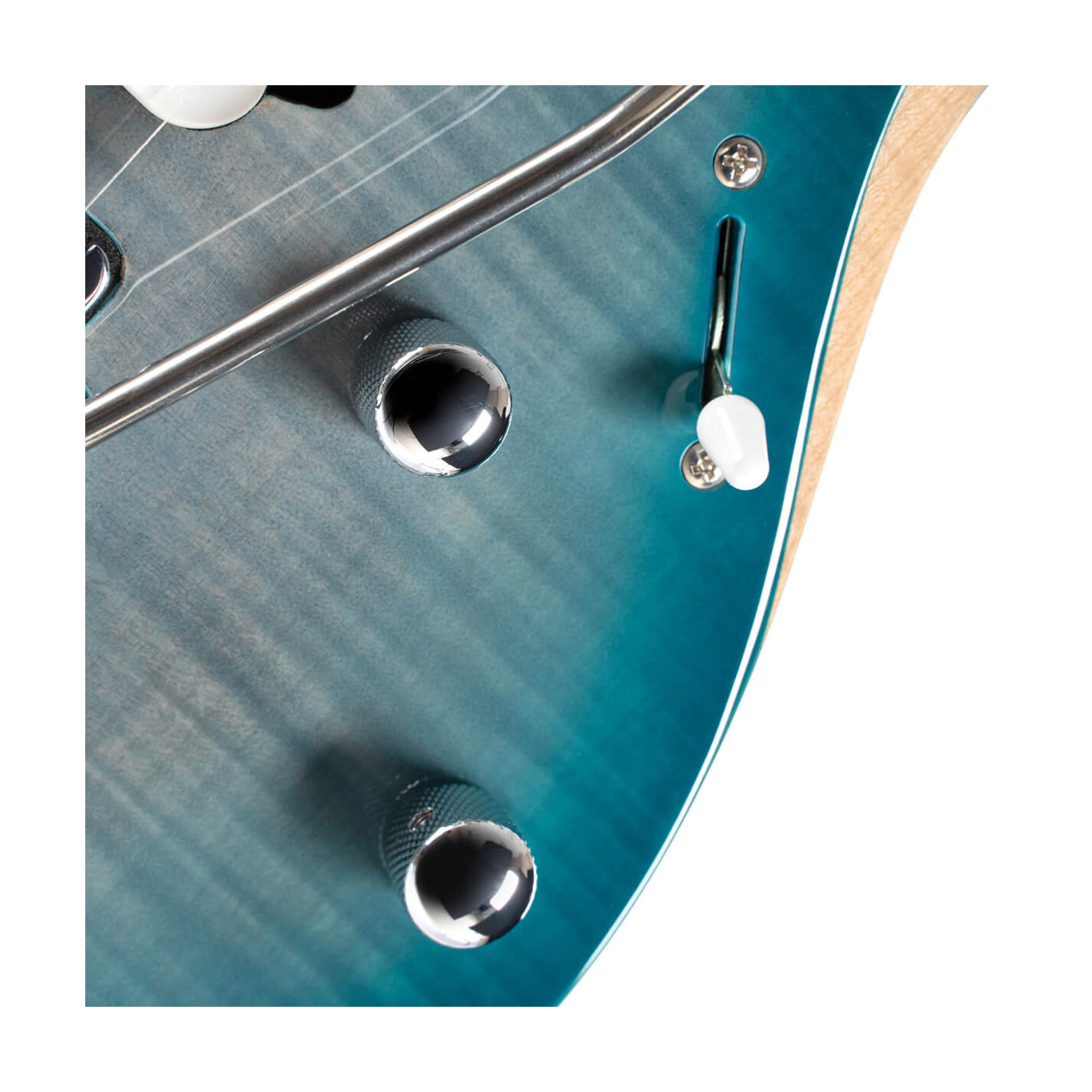 La tapa de Arce flameada en un cuerpo de Caoba asegura un gran balance entre los graves cálidos pero llenos y los agudos brillantes y transparentes que cortarán a través la mezcla con autoridad.