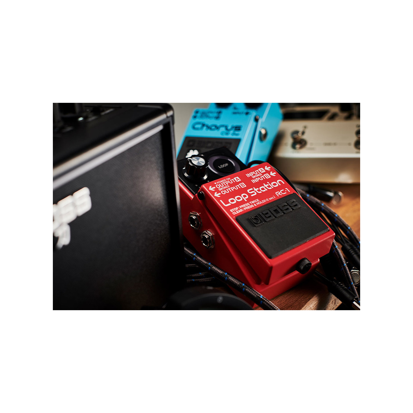 El RC-1 es un looper directo que es fácil de operar. Experimenta la diversión de hacer loops cuando grabas, reproduces, haces y deshaces los loops utilizando este compacto pedal BOSS. Y por supuesto, El RC-1 mantiene la calidad y las prestaciones de BOSS que los músicos de todo el mundo esperan. En el panel superior, se encuentra un innovador indicador de loop que consiste en 24 segmentos de LED dispuestos en un patrón circular. Puedes determinar de forma rápida y sencilla el estado actual de los modos REC/Overdub/Play. Con un máximo de 12 minutos de grabación estéreo, el RC-1 es capaz de capturar cualquier interpretación que puedas crear o imaginar. Las entradas/salidas estéreo pueden utilizarse con efectos y amplificadores estéreo. Además, también te permiten conectar instrumentos estéreo como sintetizadores. Otras características incluyen alimentación con pilas o adaptador de corriente AC, asi como la posibilidad de conectar pedales footswitch externos.