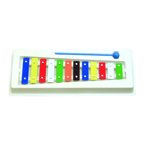 Metalófono Diatónico de 12 Notas con teclas de colores y base de plástico.