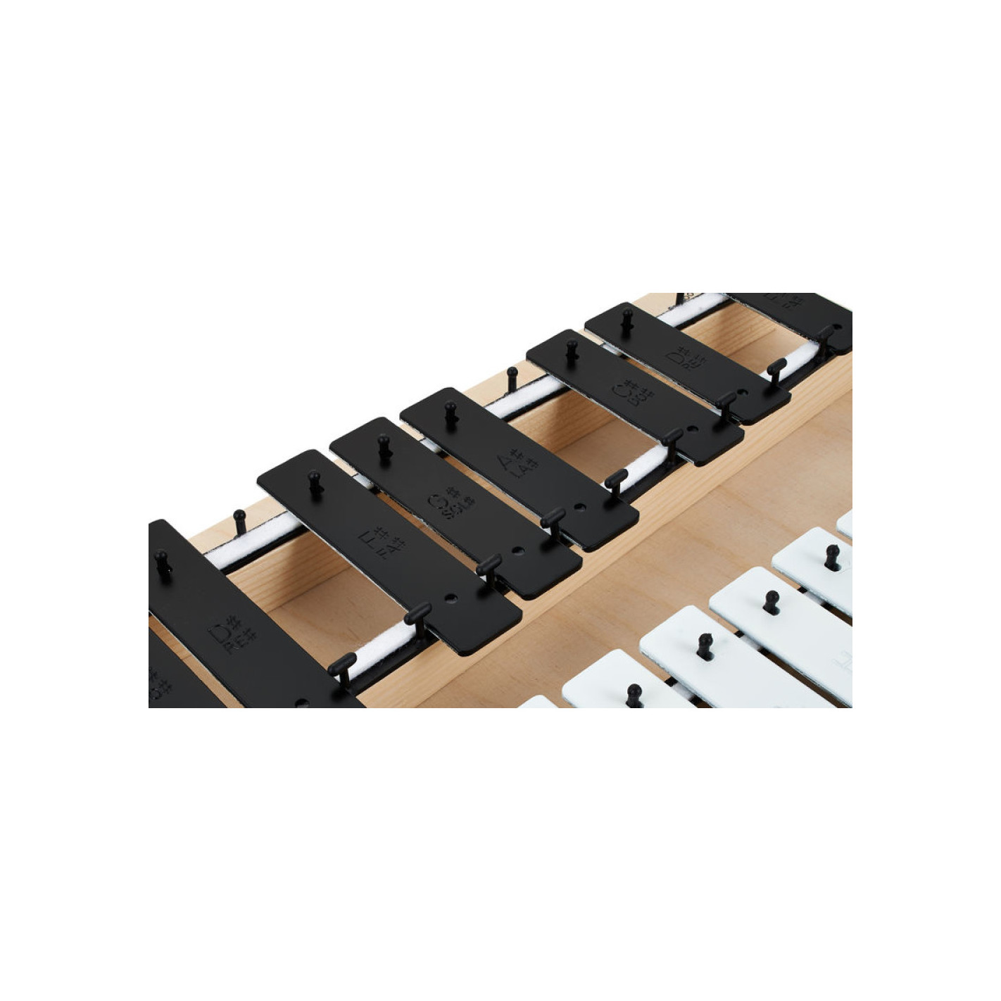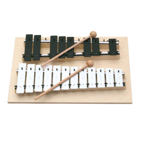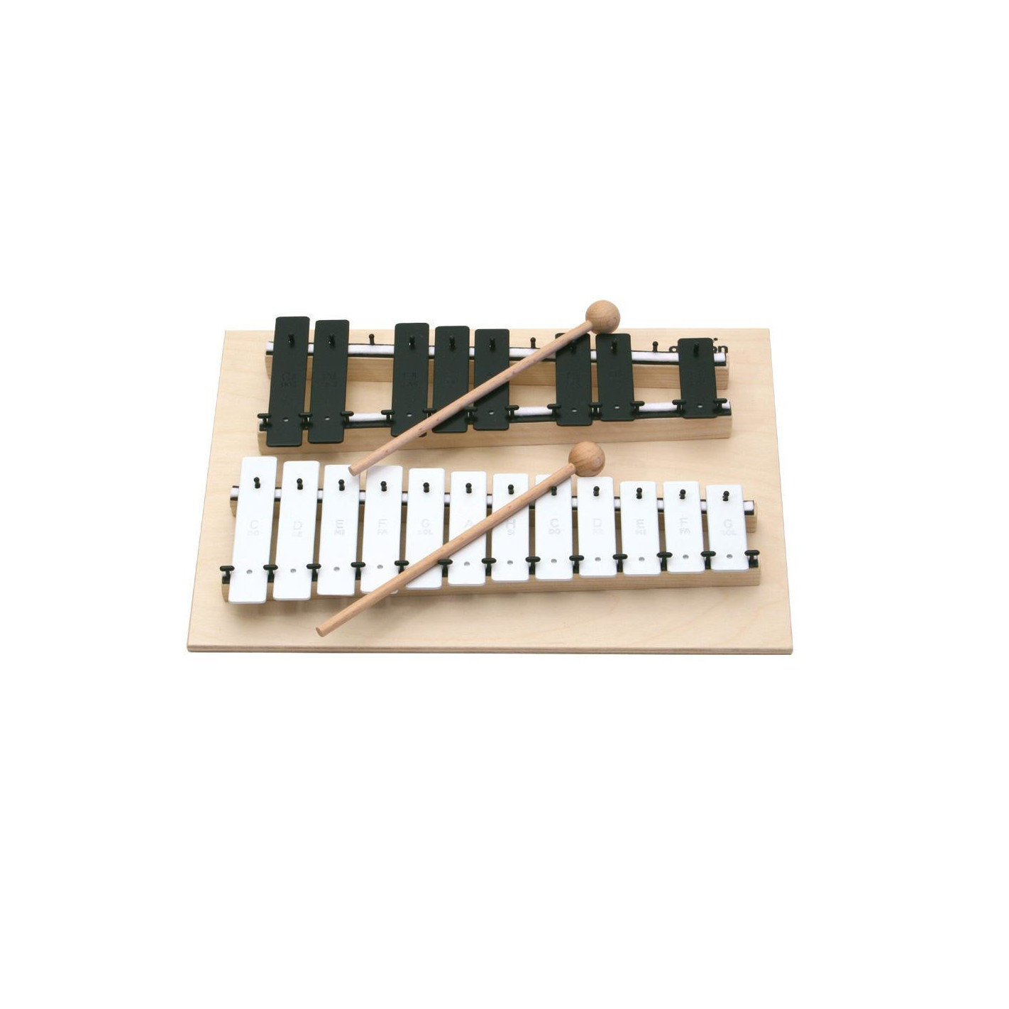 Metalófono 25 Notas Cromático 11080 con 25 teclas blancas y negras y placa base de madera.
