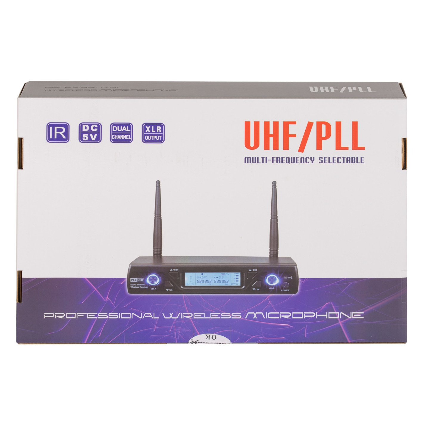 Micrófono inalámbrico Multifrecuencia (460-970MHz). Sistema Diversity UHF con modulación FM, control PLL (Phase Lock Loop) y bloqueo de acople.