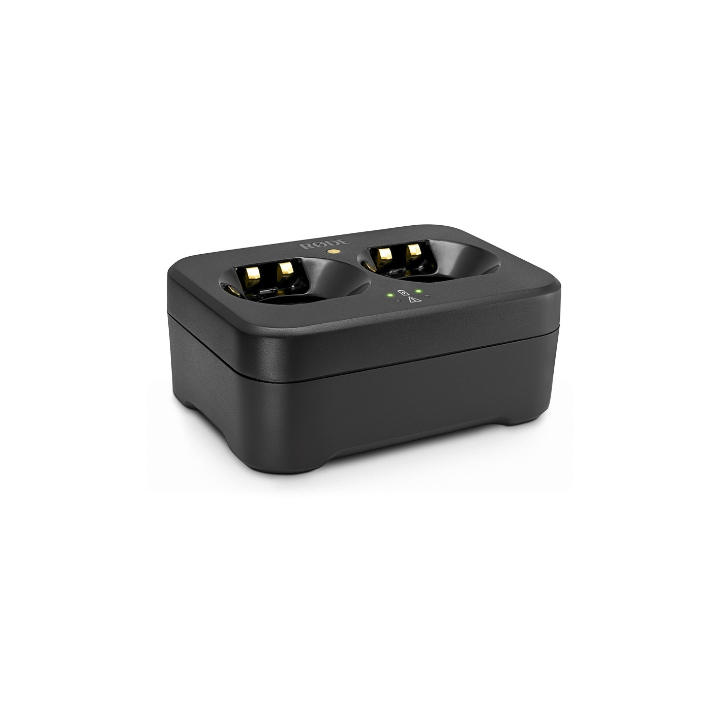 Diseño resistente, proporciona carga rápida sin necesidad de usar cables o deSmontar la batería. puede cargar dos TX-M2s, dos baterías LB-1 o la combinación de ambos simultaneamente. Mide 162mm x 332mm x 75mm, y ocupa muy poco espacio de escritorio o almacenamiento. Diseñado en Australia y respaldado por la garantía de 2 añs de RØDE.