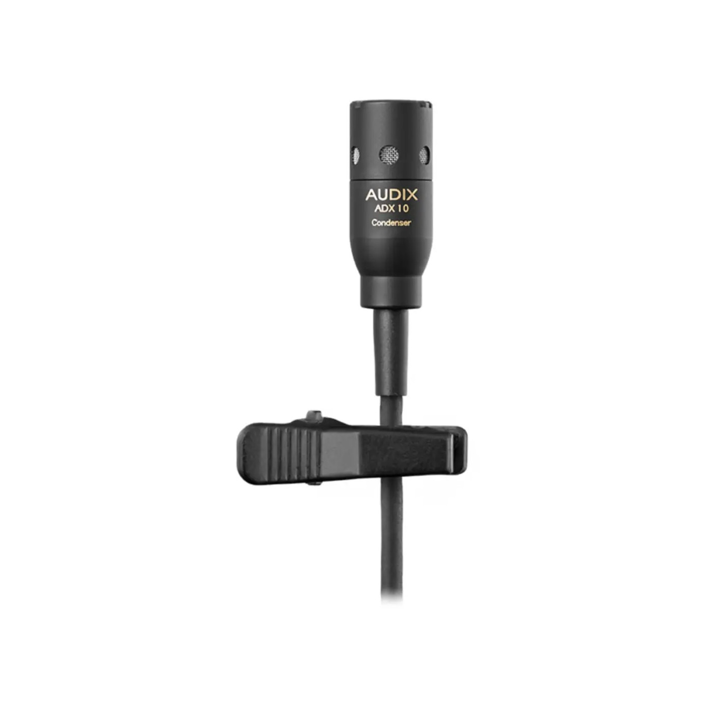 Principalmente para su uso con sistemas inalámbricos Audix, el micrófono de condensador cardioide ADX10 incluye un clip de sujeción y un cable adjunto de unos 8 cm que termina en un conector mini-XLRf.