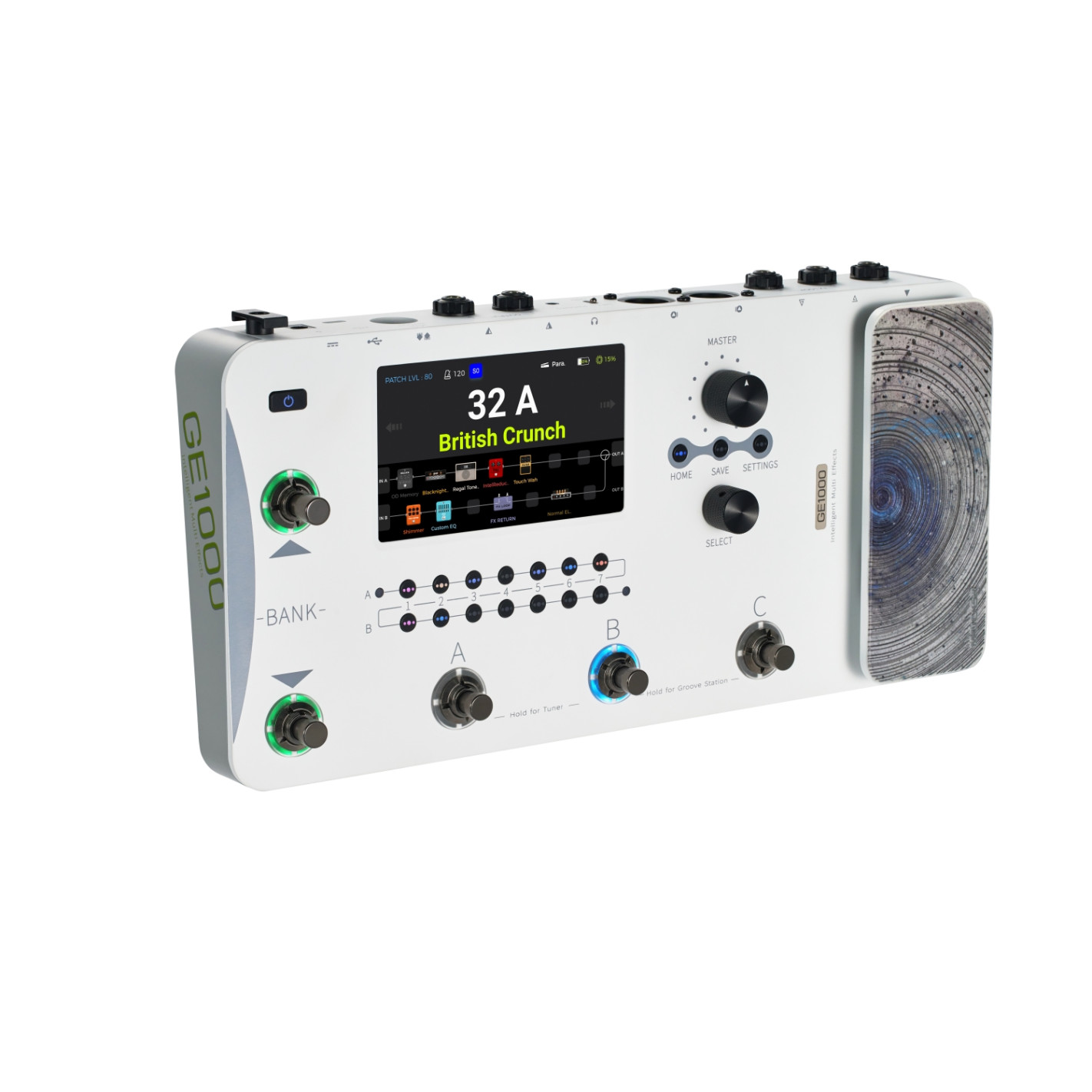 Adicionalmente, la GE1000 presenta un innovador ecualizador automático controlado por IA que ajusta automáticamente un ecualizador de 5 bandas según el estilo musical y la forma de tocar del usuario. No limitándose solo al tono, el pedal incorpora una Groove Station con caja de ritmos y looper, diseñados para funcionar de manera independiente o sincronizada con el tempo. La pantalla táctil en color de 5 pulgadas y los controles intuitivos mantienen la esencia de los pedales GE anteriores, mientras que la flexibilidad se ve reforzada por puertos MIDI programables, software de gestión de presets, compatibilidad con la aplicación móvil MOOER y diversas opciones de enrutamiento de audio, incluyendo reproducción Bluetooth e interfaz de audio USB.