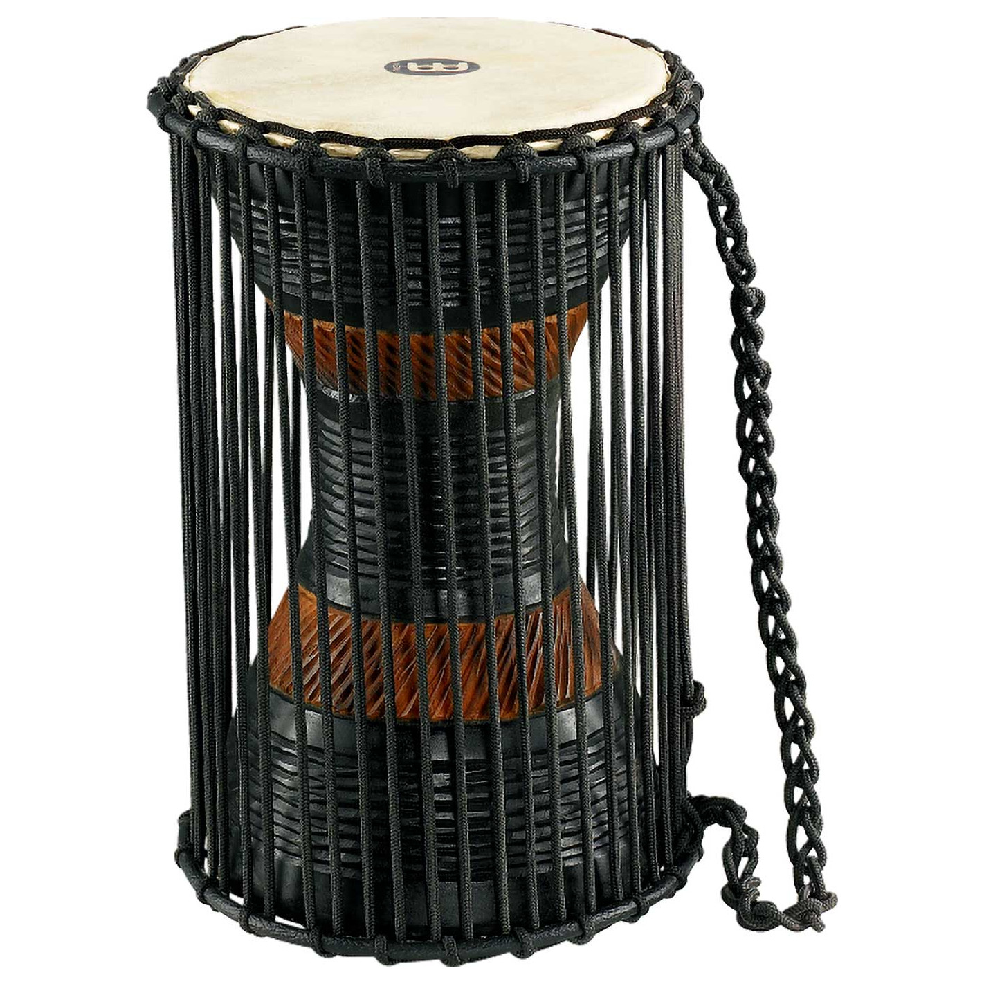TAMBOR AFRICANO 'Tambor de mano africano 7” x 12'', con 28 cuerdas tensoras de 3 mm cada una. Tallado de una pieza maciza de nuestra propia plantación de caoba. Parches de piel cabra seleccionados a mano.